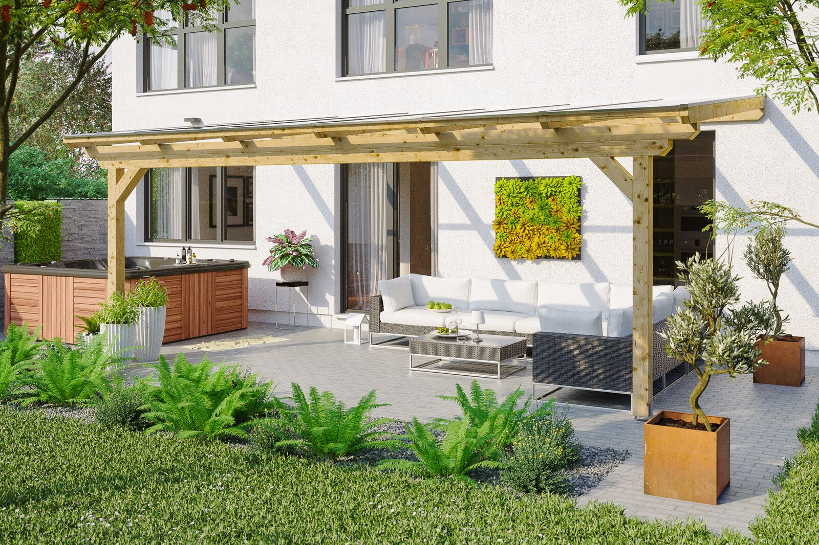 Terasztető vagy nyitott garázs 12-választható méretben 4-gyári színben. Skanholz terasztető, kész terasztető építés.
