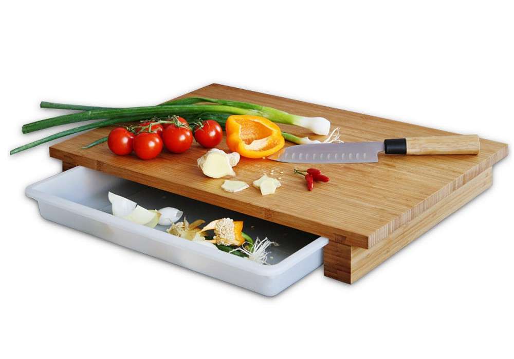 CleenBo vágódeszka praktikus kihúzható műanyag tálcával