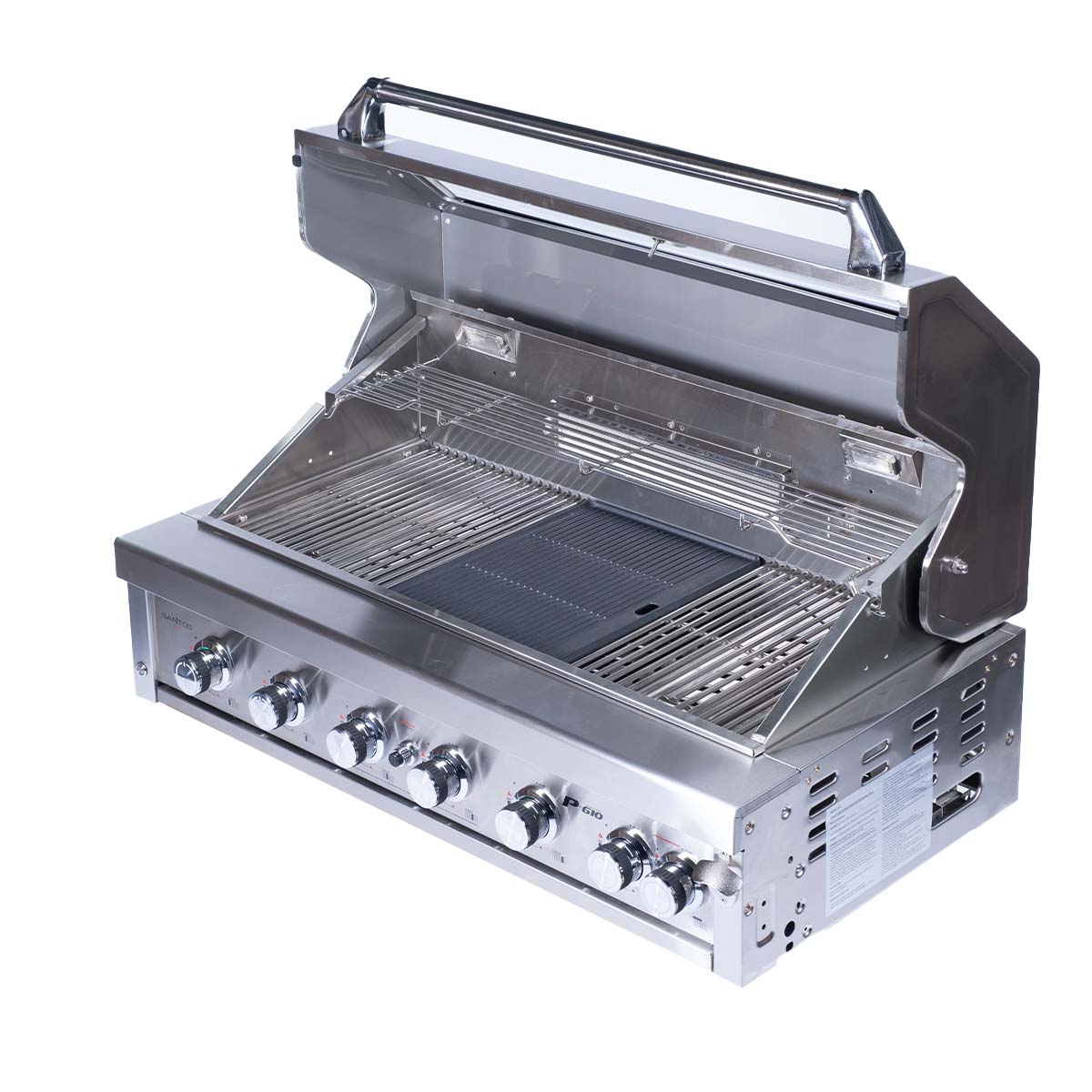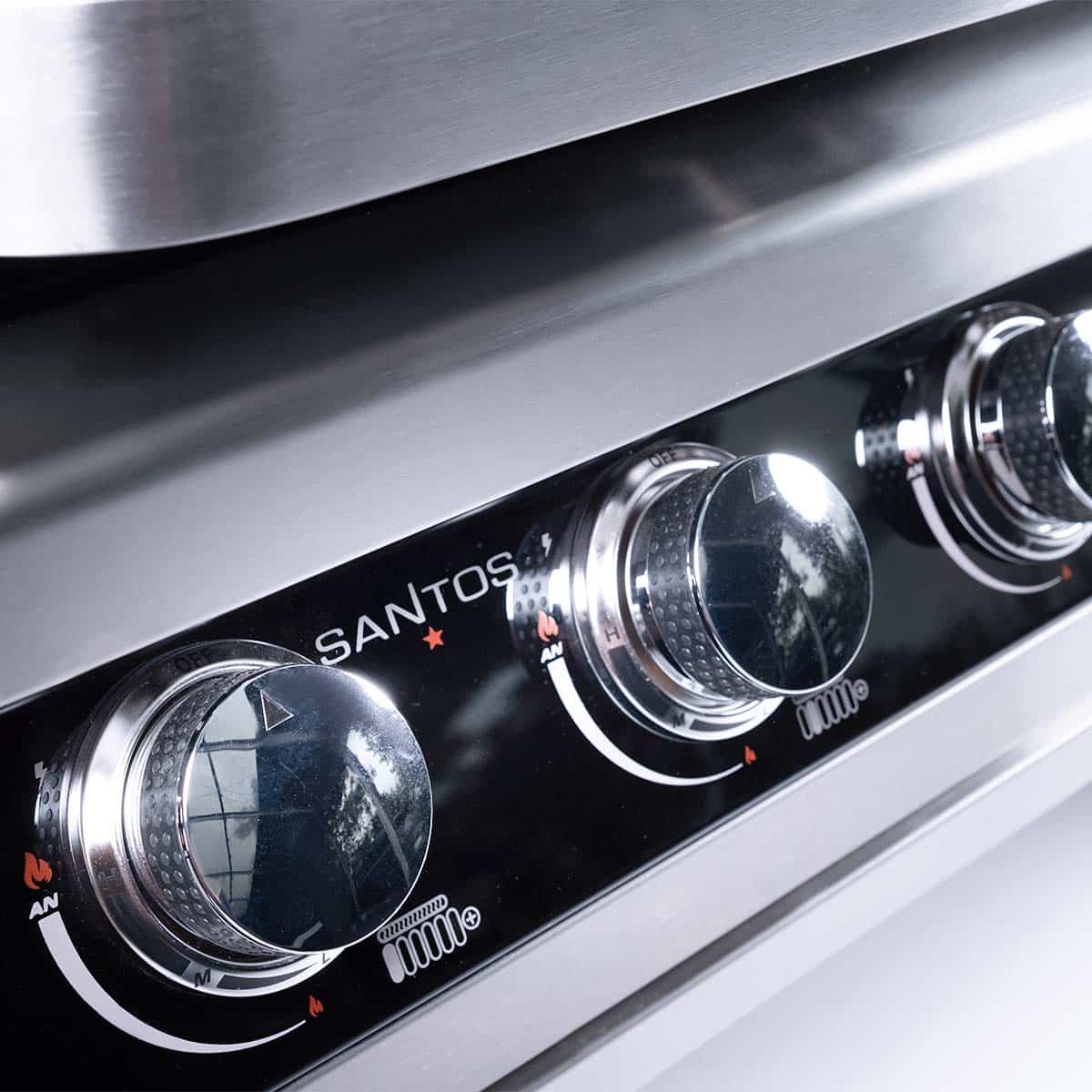 - Santos grills zászlóshajója: nagy vendégsereg gyors kiszolgálására is alkalmas professzionális Santos grill, közel 1 m sütőfelülettel, megvilágított sütő térrel. Kerti konyha pultba könnyen beépíthető grill.