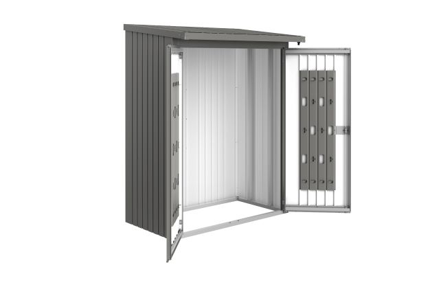 WoodStock Biohort fatároló (Biohort Brennholzlager) kiegészítők a tárolóval azonos színben rendelhetők. Tűzifa tároló és tárolószekrény is egyben, amely praktikusan a fal mentén szerelhető fel. A tartozékként kapható hátsó fal védi a ház falát a tárolt tűzifa miatt esetlegesen keletkező sérülésektől.