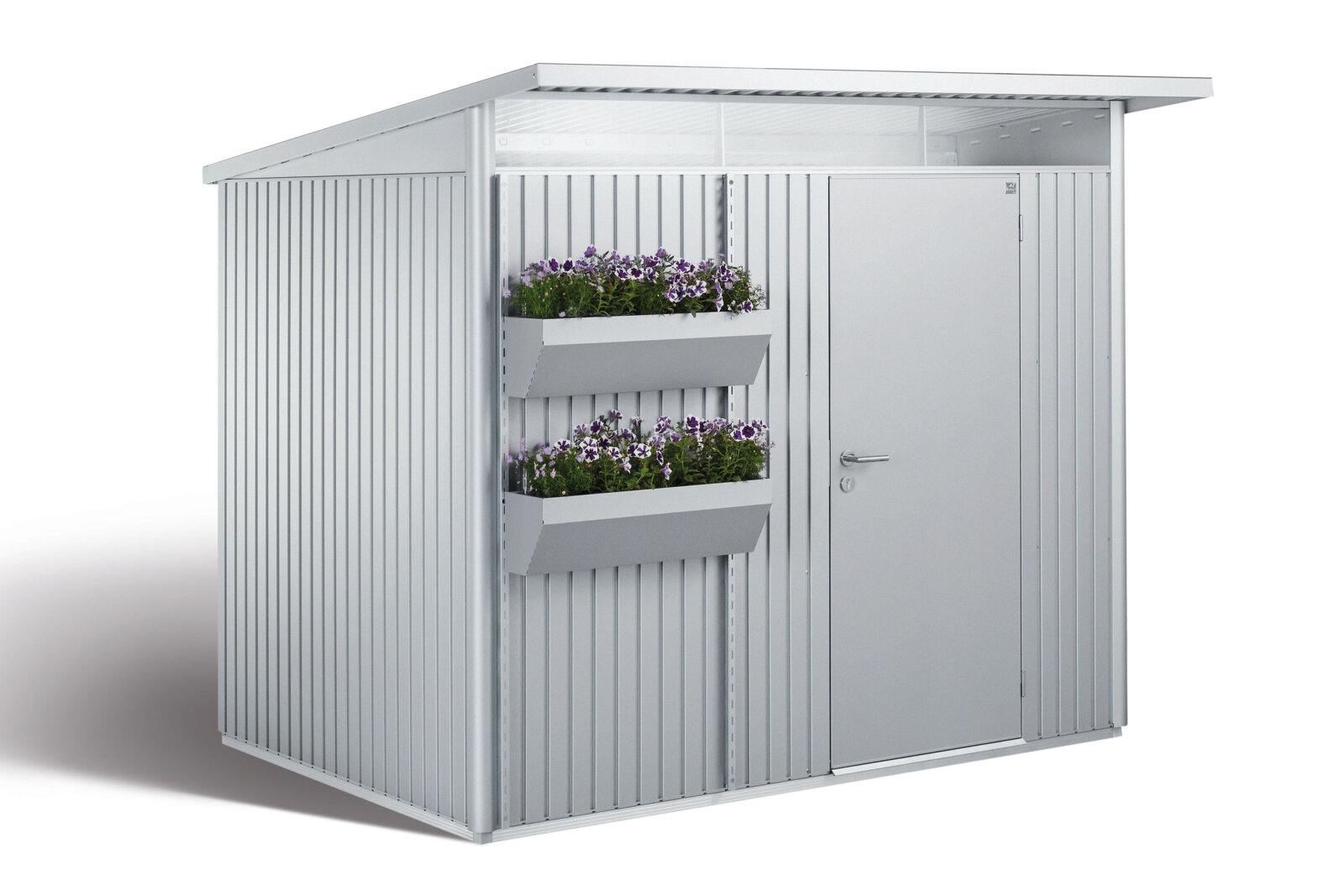 A Biohort virágláda FloraBoard praktikus kiegészítő a kerti házakhoz a virágok elhelyezésére.