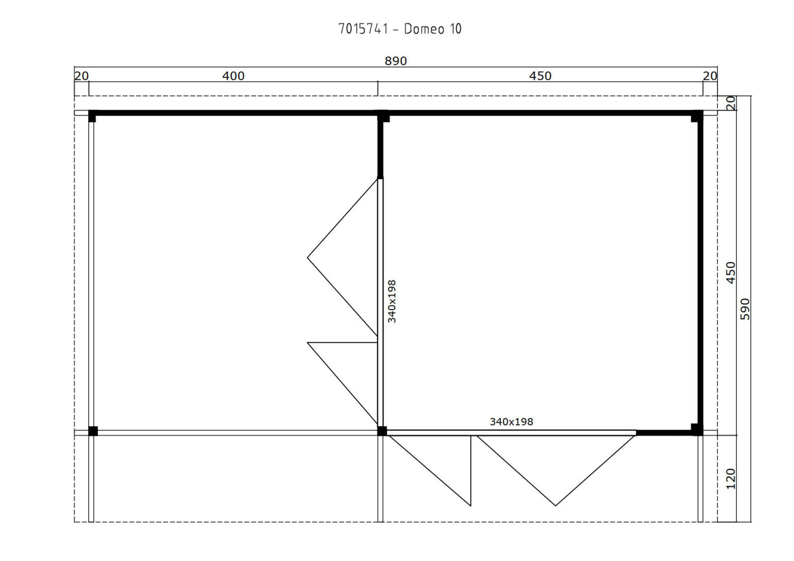 Domeo 10 modern kerti ház több, mint egy klasszikus kerti ház! A kiterjedt üvegezésnek köszönhetően csodálatos kilátás nyílik a kertre, valamint sok fény jut be a szobába. Ez a modern faház ezért tökéletes pihenőnek, irodának otthoni munkavégzéshez vagy akár szauna helyiségnek. Egyszerűen tökéletes hely a visszavonuláshoz. Rendelje meg új, 2450 cm oldalfal magasságú, válogatott északi lucfenyőből készült DOMEO 10 kerti házát webáruházunkból még ma.