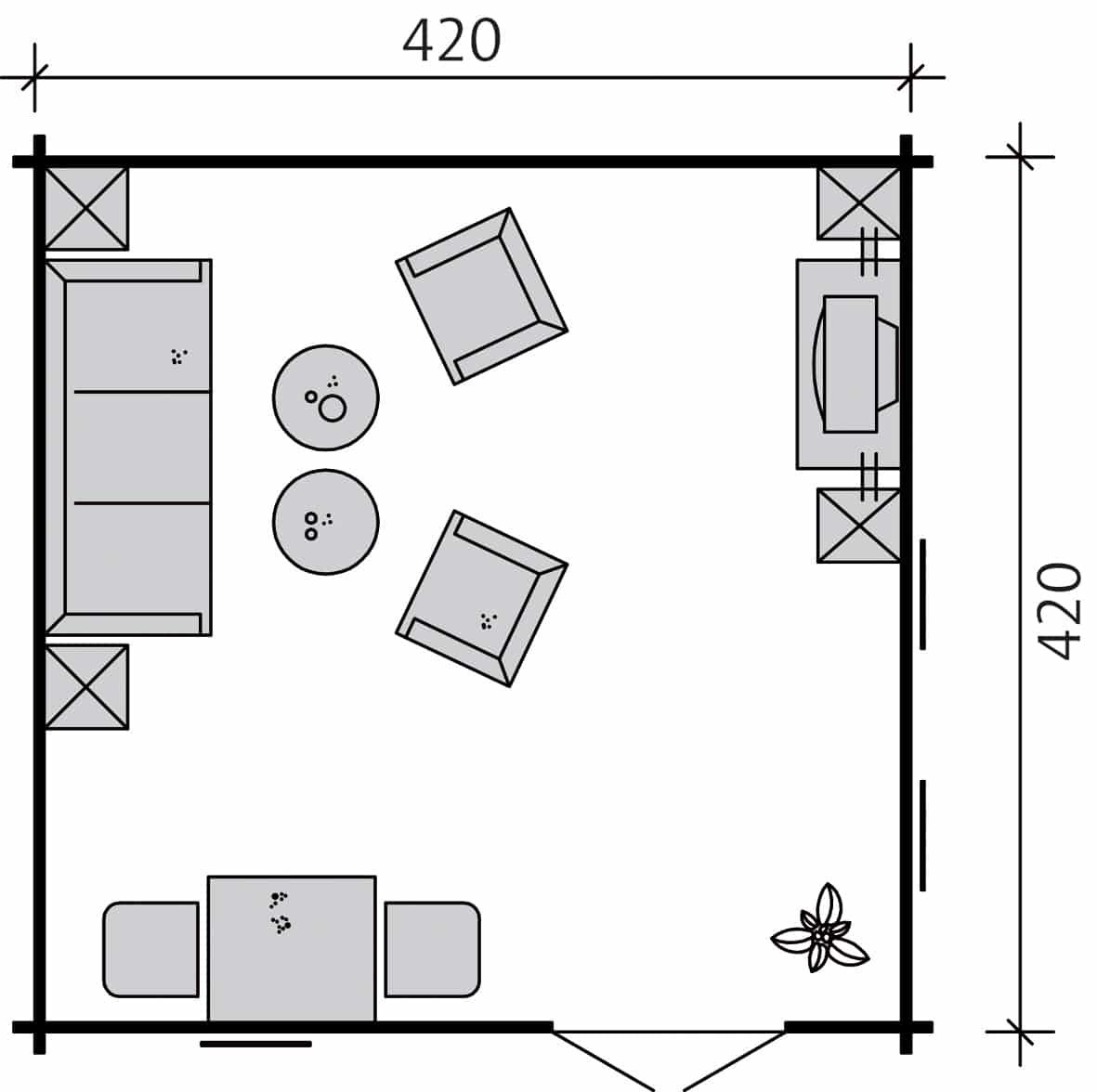 Skanholz Bern 1. gerendaház alapozási mérete 420 x 420 cm (alapozási külső sarokméret )