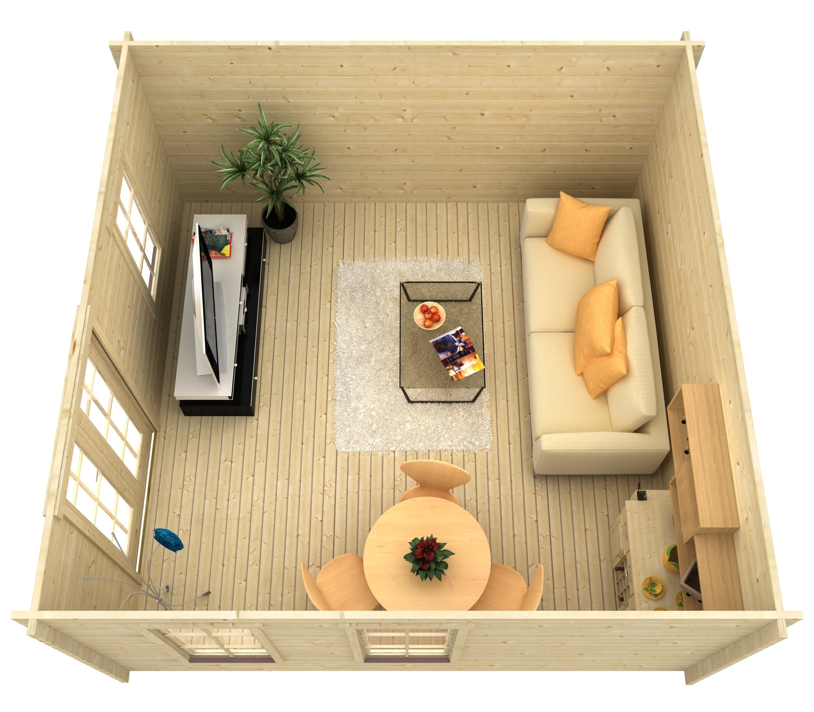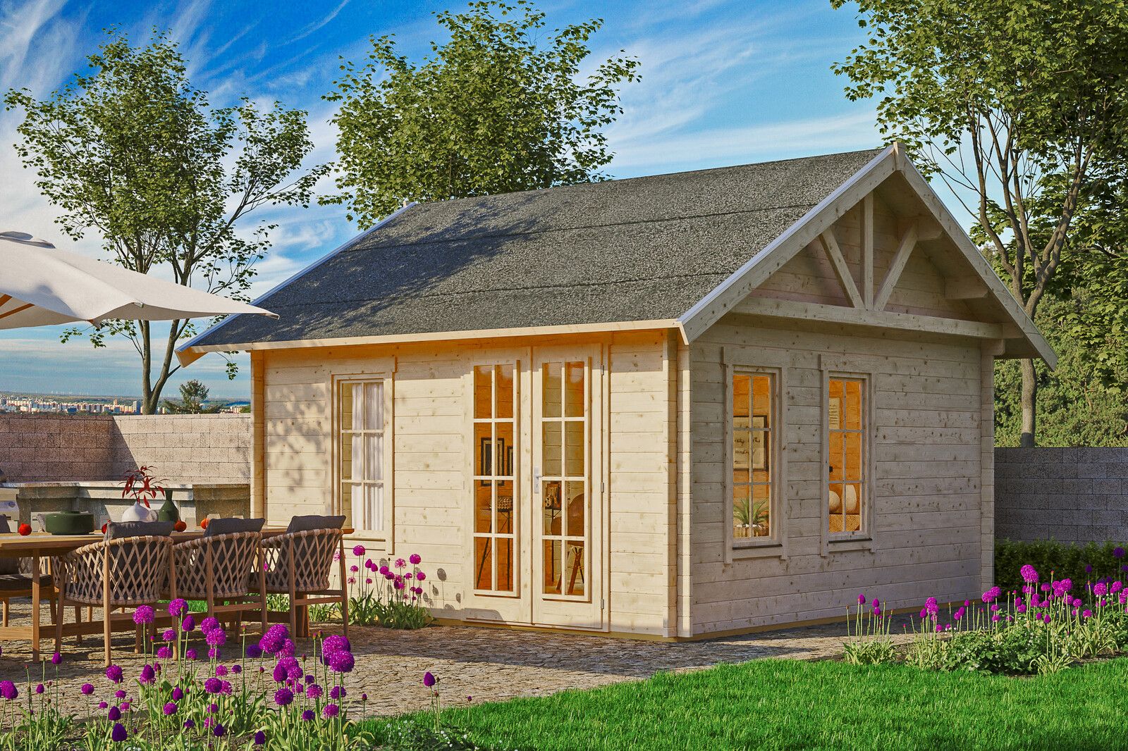 Faház hétvégi gerendaház Bern 1. 420 x 420 cm; 17,64 m2; hőszigetelt nyílászáró üvegezéssel !