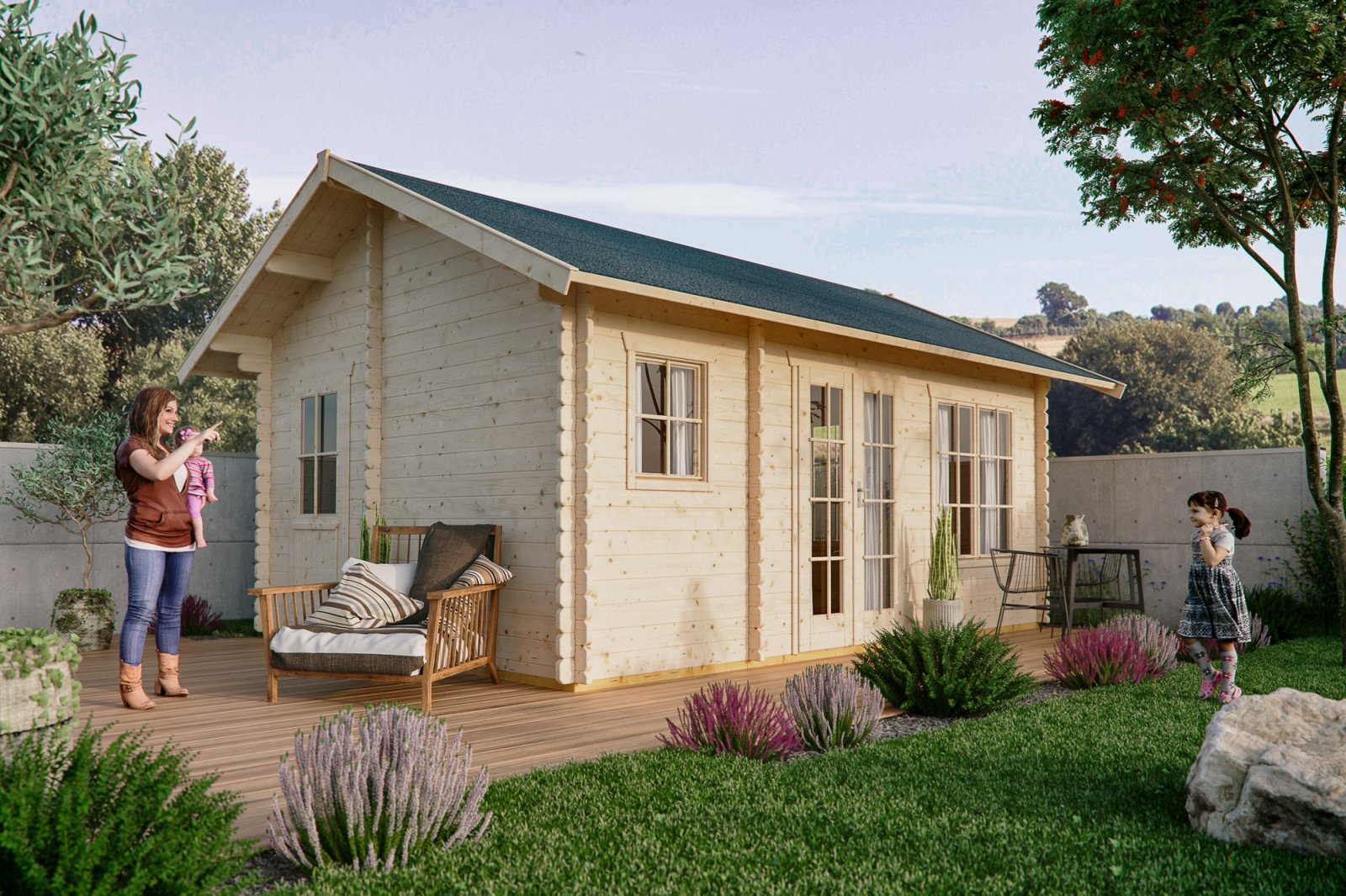 Masszív gerendafalú hétvégi pihenőház Esbjerg faház 3 választható méretben 45mm falvastagsággal