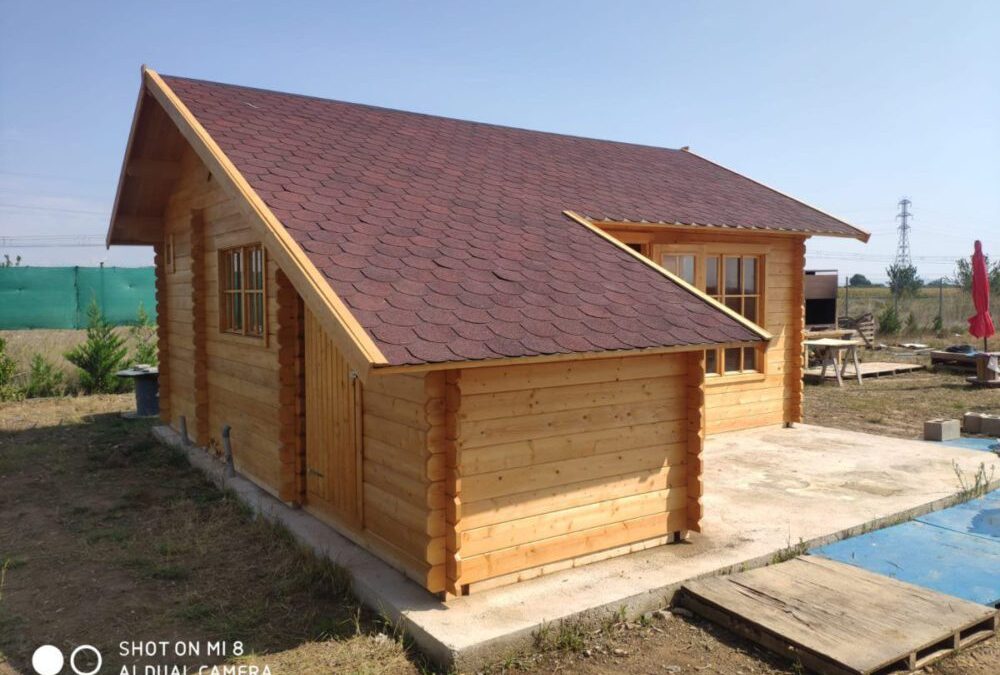 - Skanholz faházunk 19 mm-es tömör fa tetőburkolat, extra erős szarufákkal épül + hőszigetelt tetőhéjalás opcionálisan kérhető.