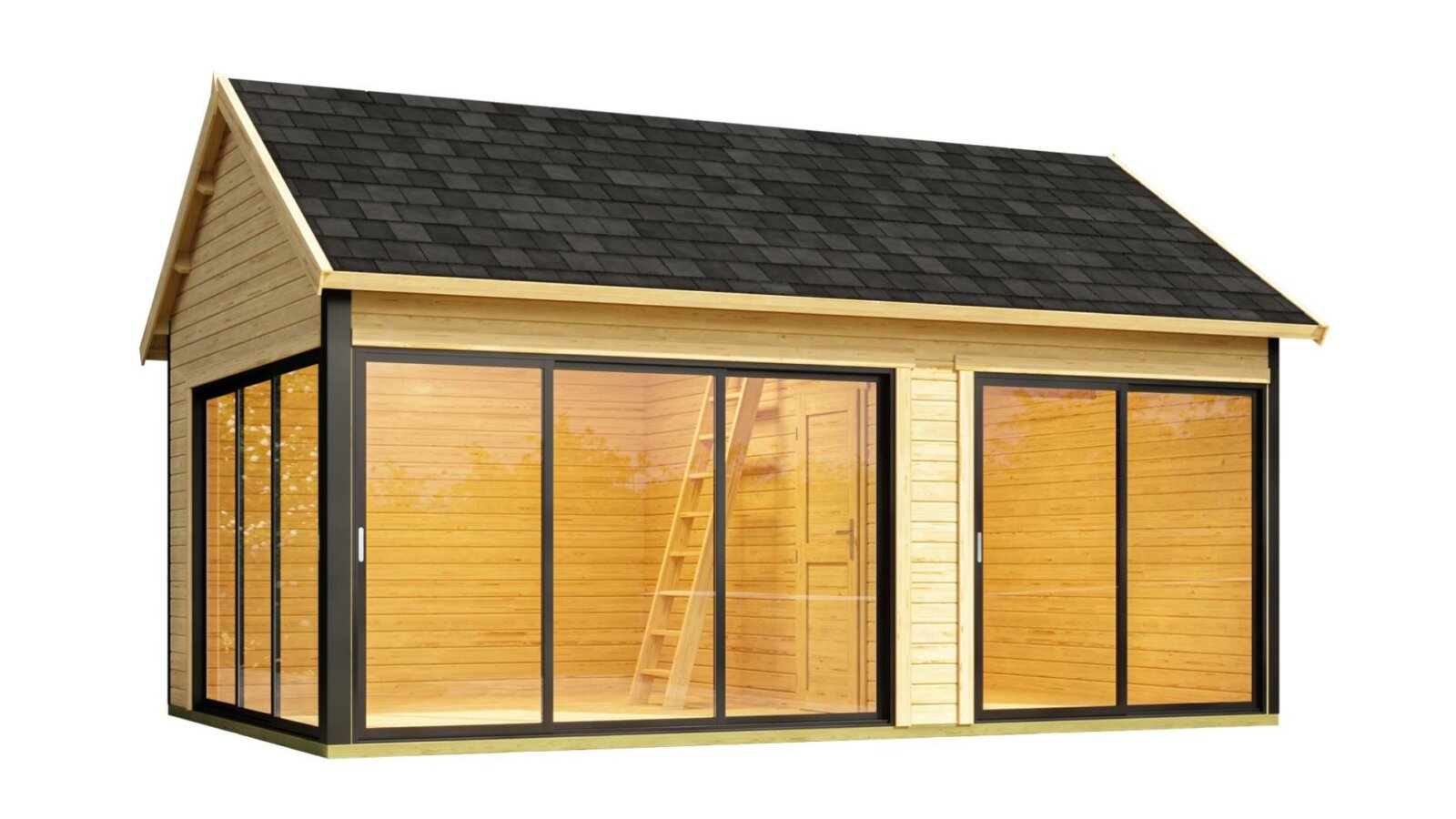 - Letisztult vonalak különleges bájt kölcsönöznek a kerti háznak. A modern klasszikus nyeregtetős ház nagyvonalú üveg felületekkel rendelkezik. Ebben a házban bent is mindig nagyon közel van a természethez. Az integrált tetőtér nem csak játékra és kikapcsolódásra hívja a kicsiket. Ezt a pihenő faház csodát fokozza még egy külön bejárattal hálószoba is.