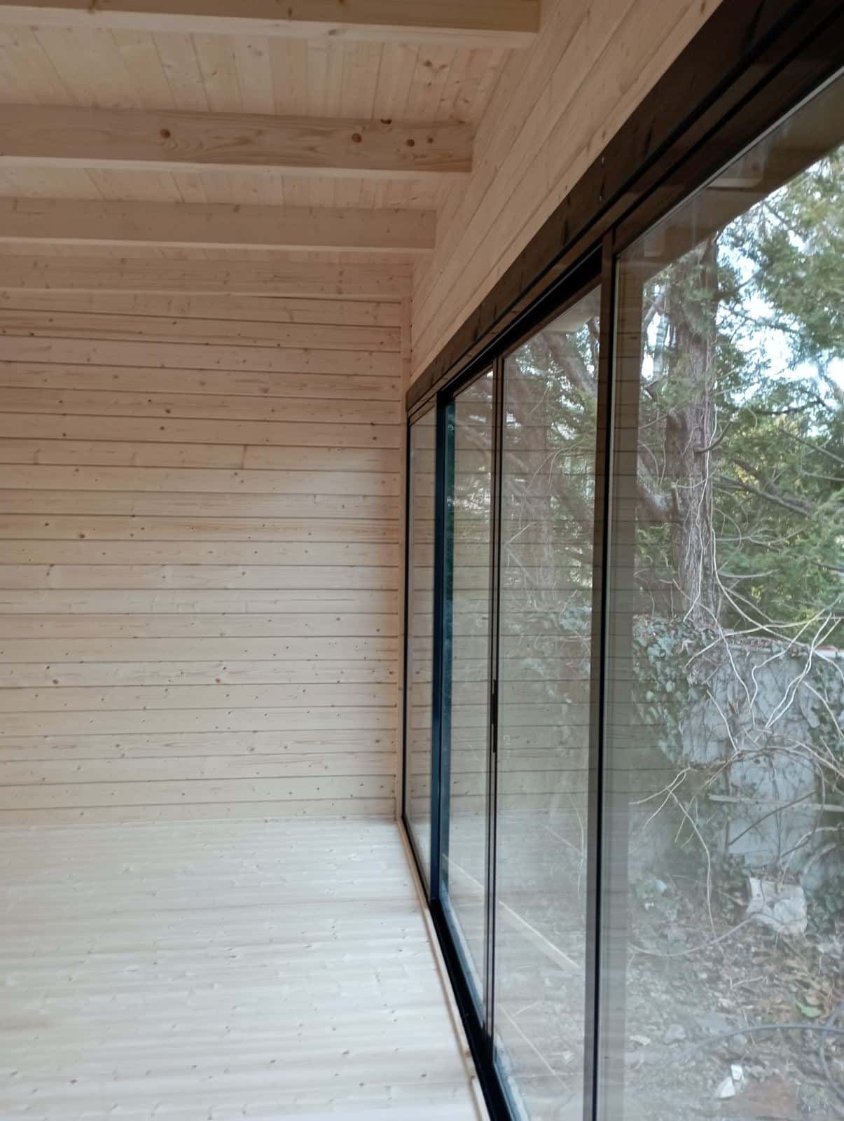 44 mm vastag gerendavázas faház, minimál stílusú pihenőház – béke és nyugalom a kertben.