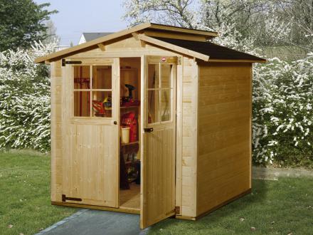 - Szerszámtároló északi fenyő alapanyagból készült. Az alap lapra szerelt csomag natúr kezeletlen faanyagot tartalmaz, amelyet szakszerűen le kell festenie a faház hosszútávú tartóssága érdekében.