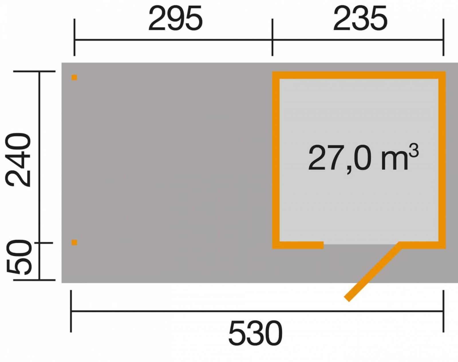 Kész kerti ház 2 méretben 235 x 241 cm vagy 295 x 300 cm alapozási méretben és 2 féle színben rendelhető + 300 cm-es oldalsó terasztetővel, hátfal nélkül.