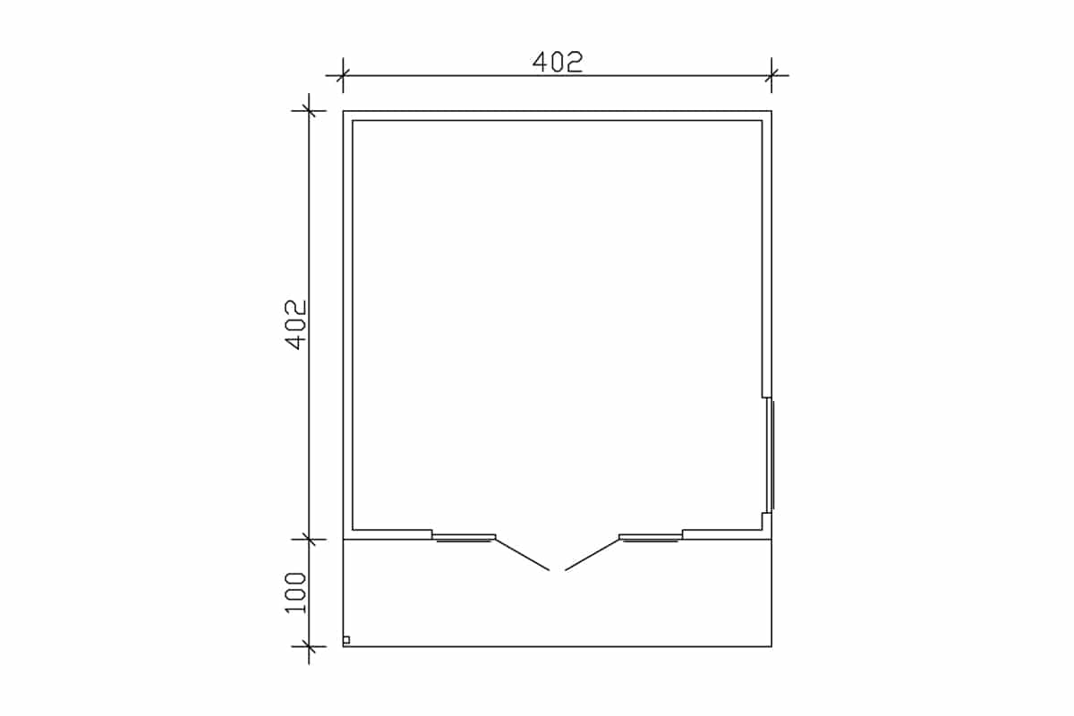 A fenti fotó melletti választógombbal tudja kiválasztani a megrendelni kívánt méretű faházat 340 x 340 cm + 100 cm terasz vagy 402 x 402 cm + 100 cm terasz külső méretben, hőszigetelt vagy hőszigetelés nélküli kivitelt is rendelhet