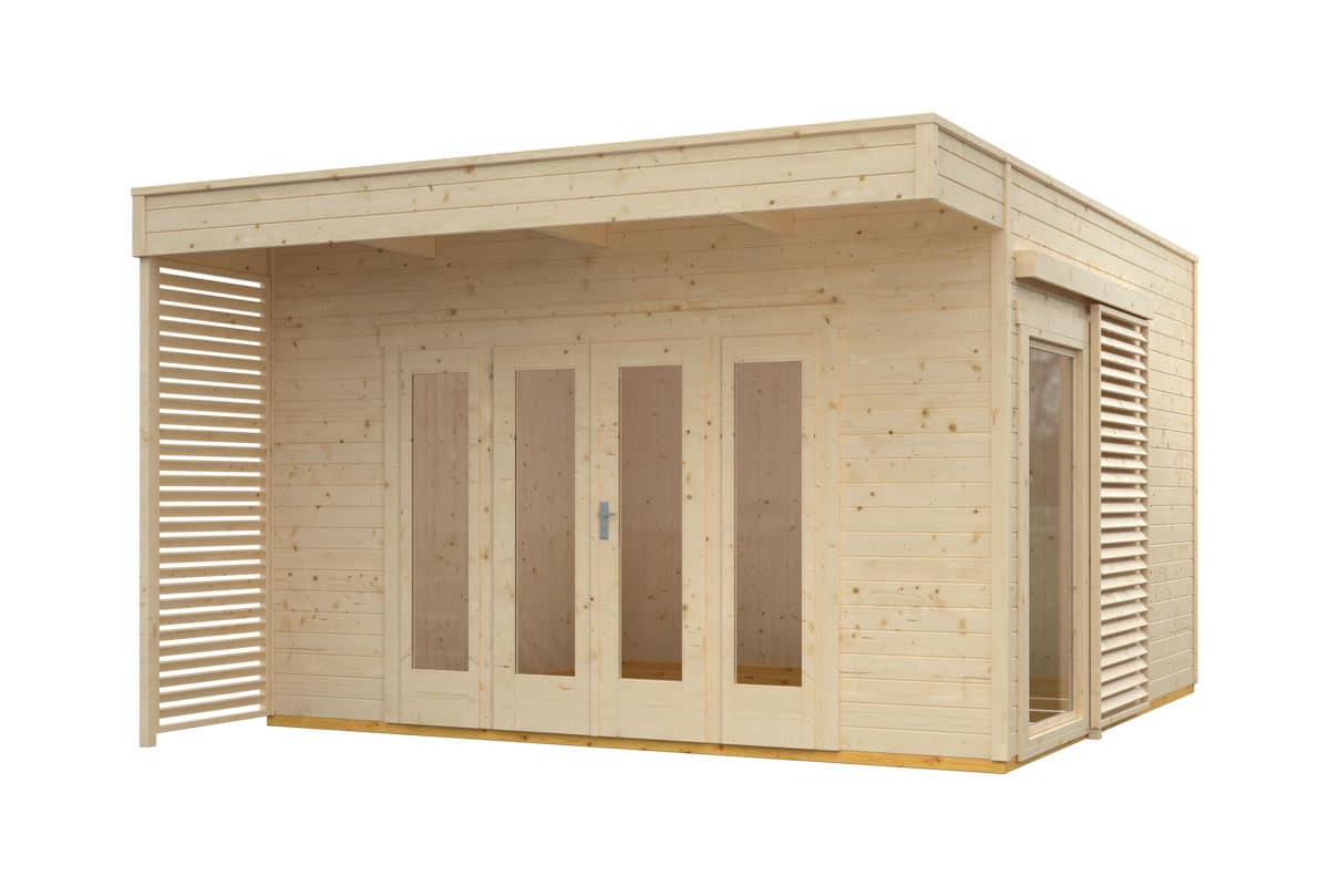 - A 340 x 340 cm-es SkanHolz Tokio kivitel 11.56 m2, a 402 x 402 cm-es faház pedig 16,16 m2 bruttó alapterületű + 100 cm terasztető
