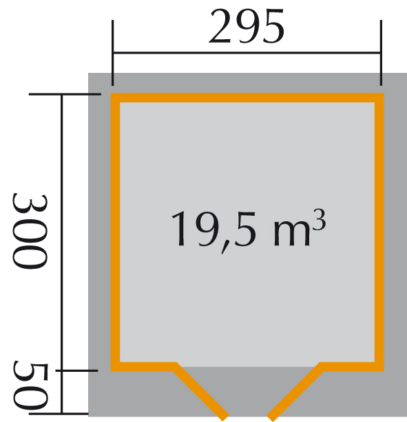 Kerti tároló faházunk külső alapozási sarok- mérete 295 x 240 cm vagy 295 x 300 cm. A kívánt méretet kérjük a fenti kép melletti méretválasztó gombbal jelölje ki.