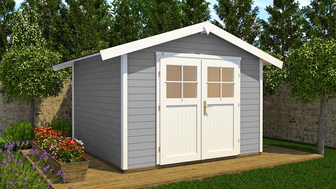 - Weka kerti tároló építése lapra szerelt, előregyártott natúr északi fenyő faanyagból.