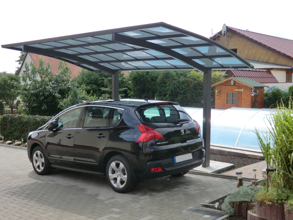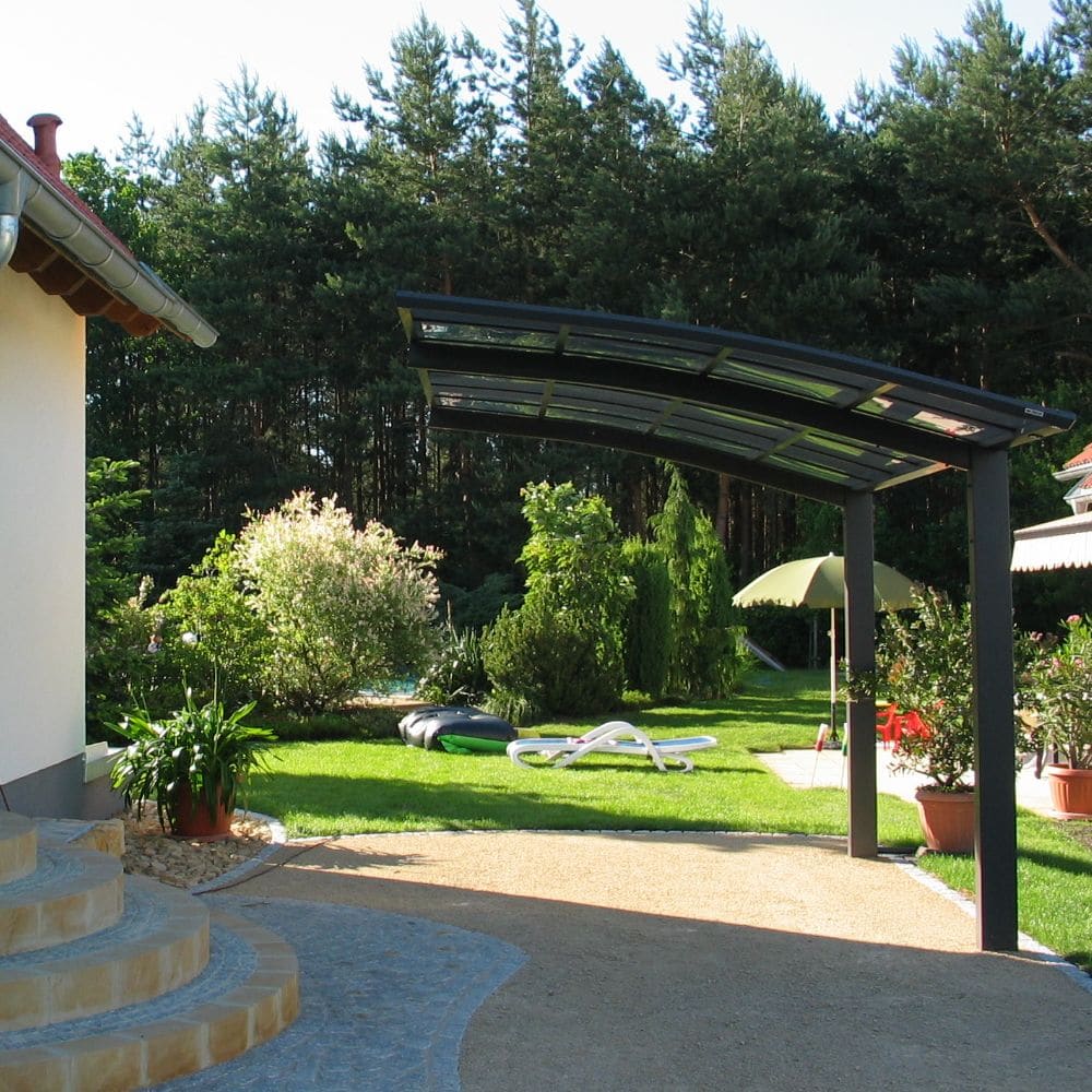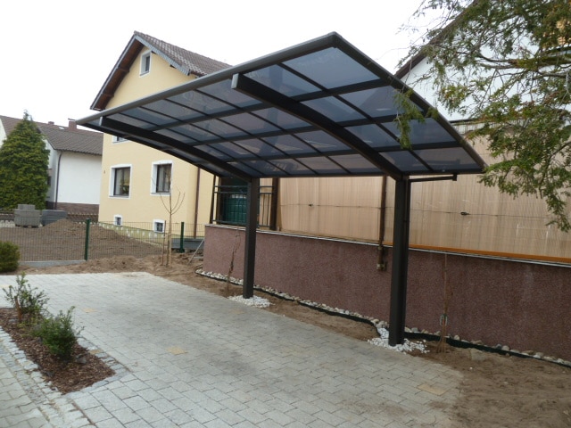 Minőségi nyitott garázstető építés többféle méretben és színben. Ximax Portoforte modern fém garázs polikarbonát tetővel.