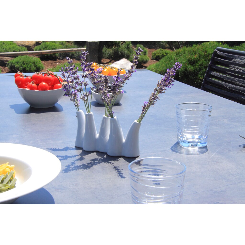 - A kerti asztal vázszerkezete porszórt alumínium váz, 12 mm vastag időjárásálló HPL asztallappal igen masszív kerti bútort eredményez. Gondozásmentes kültéri fém asztal