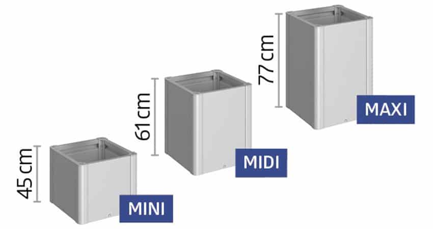 • Választható magasságok MINI 45 cm, MIDI 61 cm, MAXI 77 cm