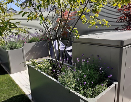 Virágágyás prémium acél szerkezetből. Biohort Belvedere design praktikus funkcionalitással