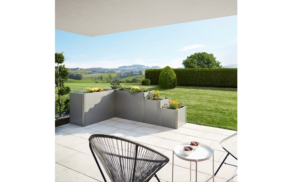 A mindössze 0,5 méter széles Belvedere ® ágyás teret nyit a különleges ötleteknek. Mint élő térelválasztó strukturálja a teraszt és a kertet, de tökéletesen illik a balkonra is. Teljesen új kialakítási lehetőségeket teremt.