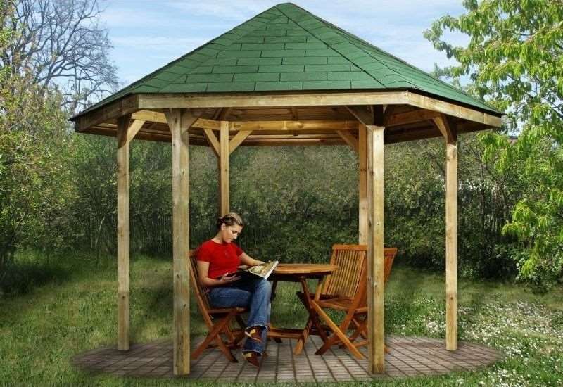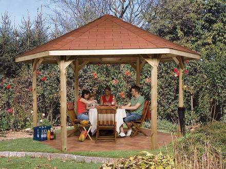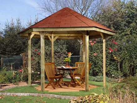 Hatszögletű Weka kerti pavilon 2-féle méretben, zsindely tetővel együtt, konzervált faanyagból, lapra szerelve