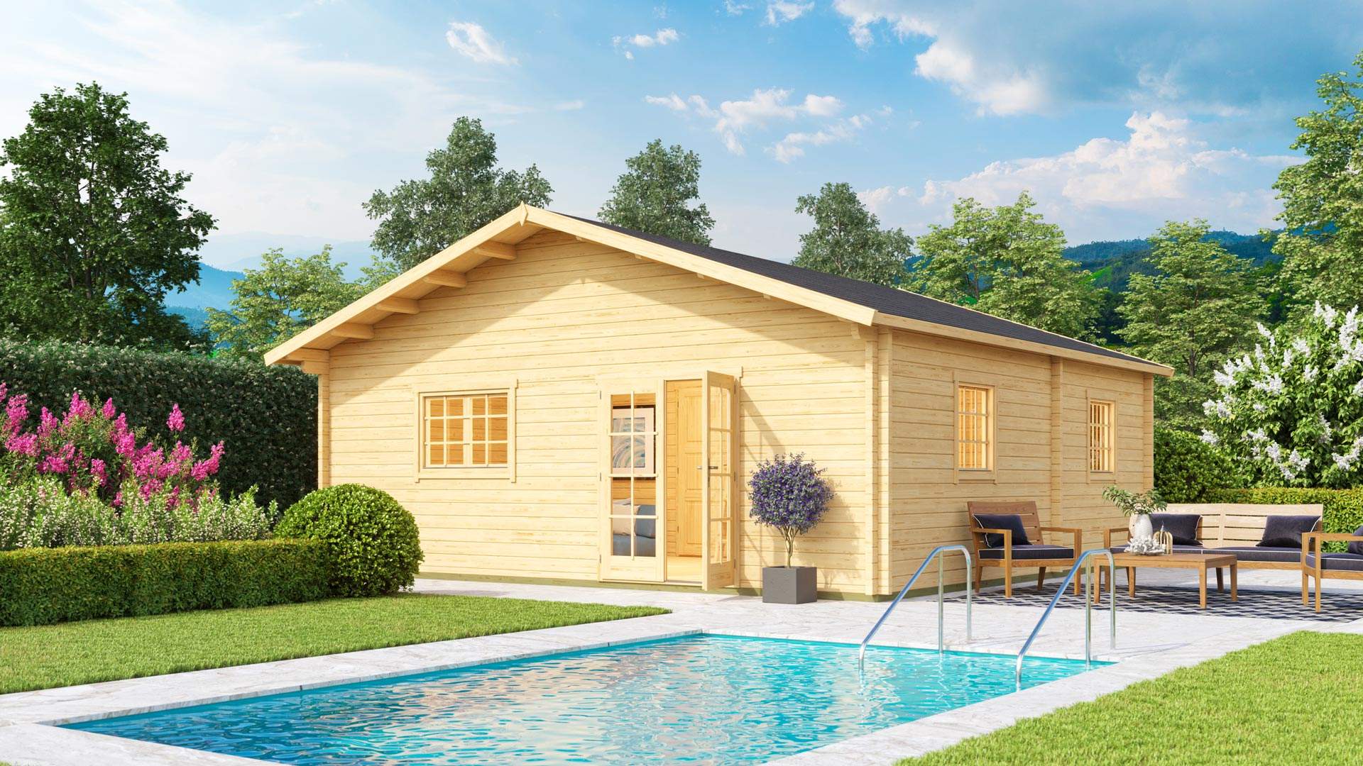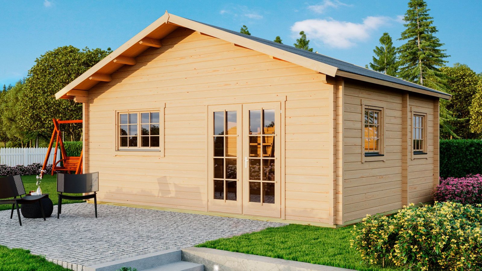 70 mm falvastagságú masszív, tartós gerendaház