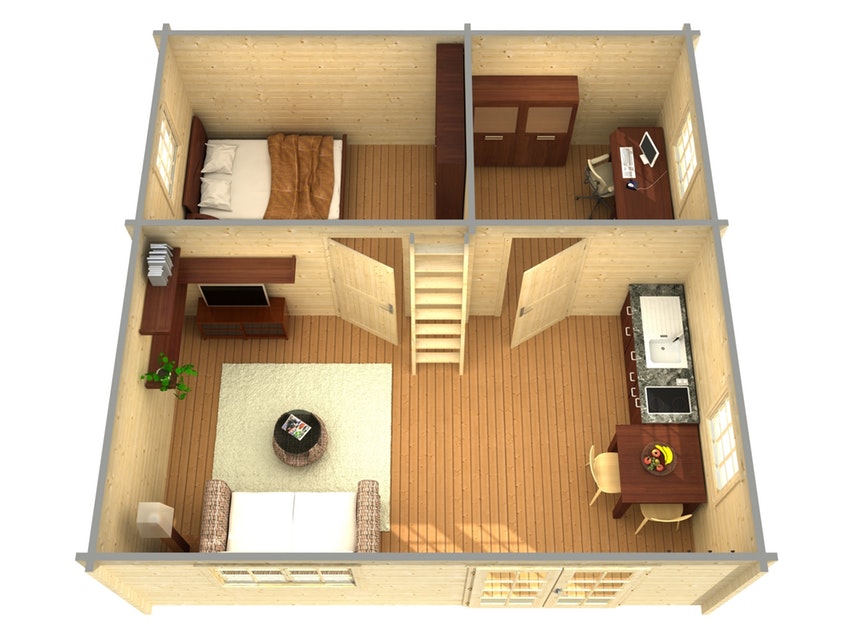 - Hétvégi faház 28 mm padlózattal és 18 mm vastag tető lambériával