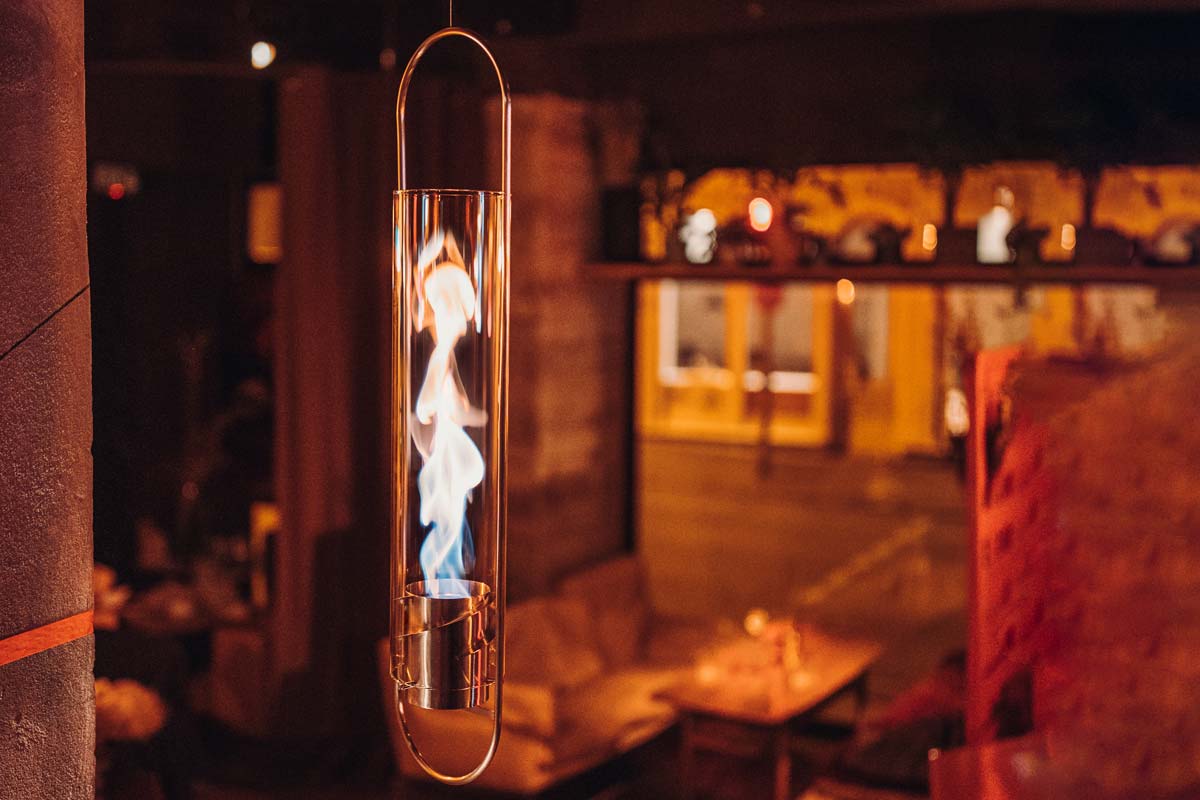 A lámpák spirális alsó légbeömlőinek köszönhetően a kéményhatást kihasználva az asztali hangulatlámpa lángja magasba kúszik és kellemesen fűti környezetüket miközben az asztaltársaságot lenyűgözi a tűztánc.