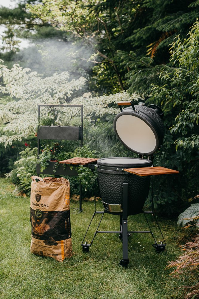 Kültéri 49 cm-es Kamado Large grill egy kiváló minőségű, kerámiából készült faszenes kamado grill, amely az igényes grillezők elvárásait hivatott kielégíteni. Tulajdonságait tekintve egyfajta mobil kerámia kemence, kiváló hőtechnikai mutatókkal, ideális egyenletes hőképpel. A klasszikus fekete kivitel nemcsak esztétikailag vonzó, hanem technikailag is felsőkategóriás élményt kínál.