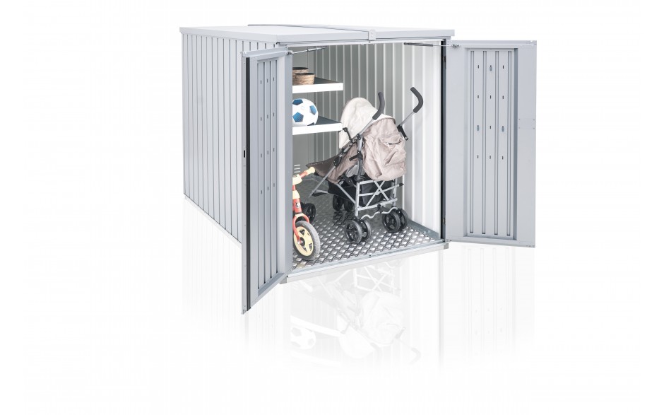 A Kerékpártároló Minigarázsban ideálisan tárolható 2 kerékpár vagy kerti szerszámok és kerti bútort is, leginkább azonban a kevés tárolóhellyel rendelkező lakóközösségek kerékpár tárolására vagy babakocsi tárolására ajánljuk.