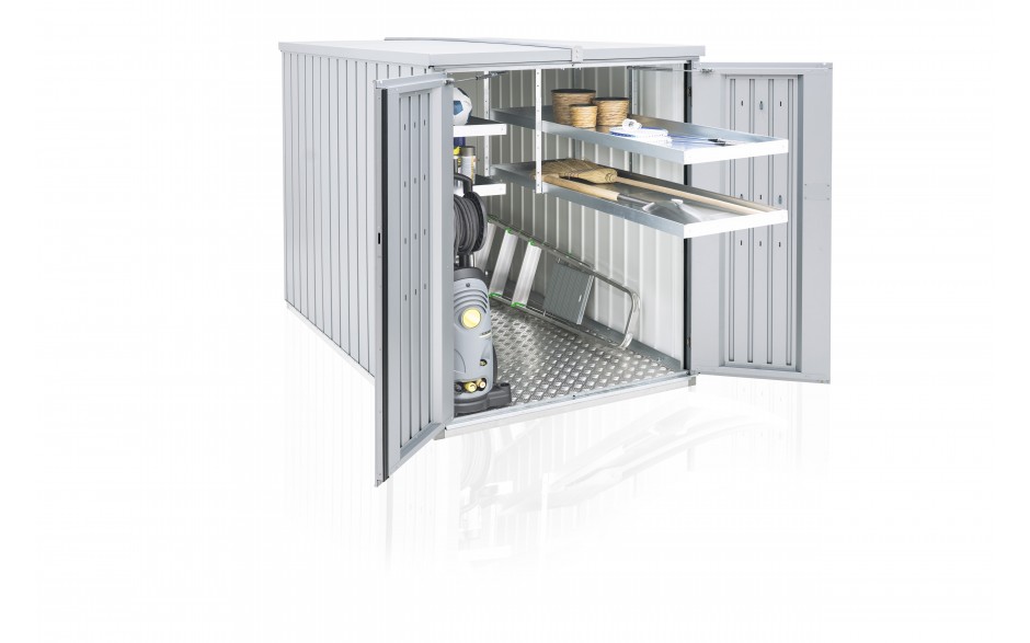 - Biohort garázs kerti tárolónk ezüst-metál vagy sötétszürke-metál színben rendelhető (belül mindig szürkésfehér)