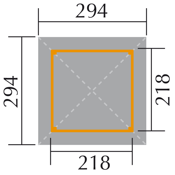 - Pavilonunk felülnézeti vetületi mérete ( eresz túlnyúlásokkal együtt ) 294 x 294 cm