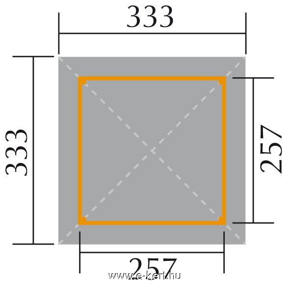 - Szaletli / pavilon alapzat mérete 257 x 257 cm