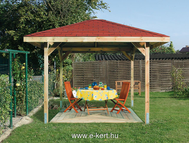 - Négyszögletes kerti pavilon / szaletli tető mérete: 333 x 333 cm eresz túlnyúlásokkal együtt