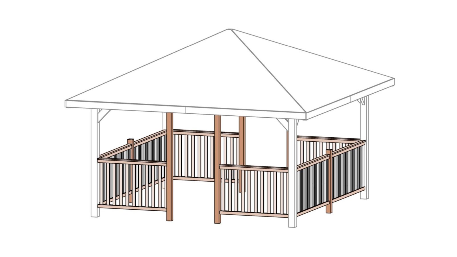 • Kész szaletli korlát elem gyalult faanyagból a pavilon 3 oldalára