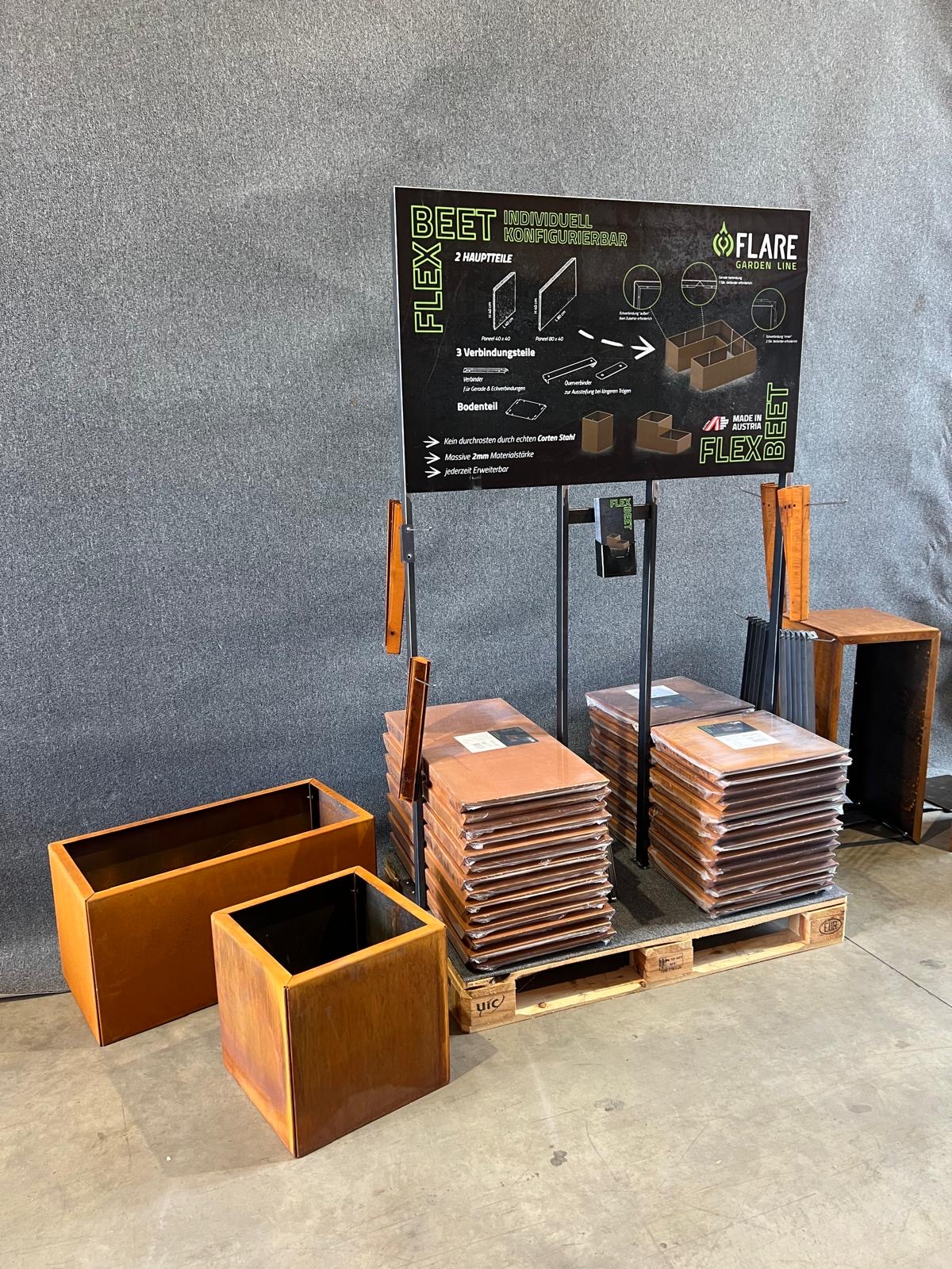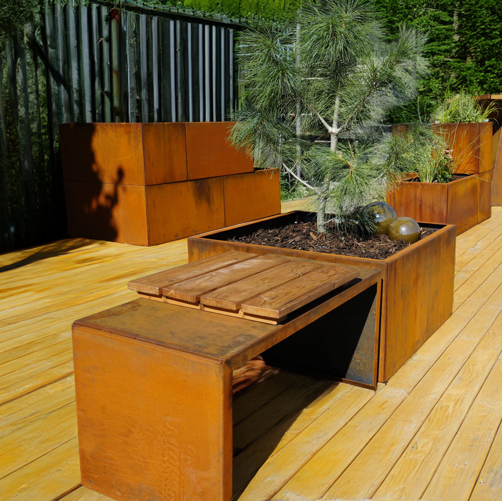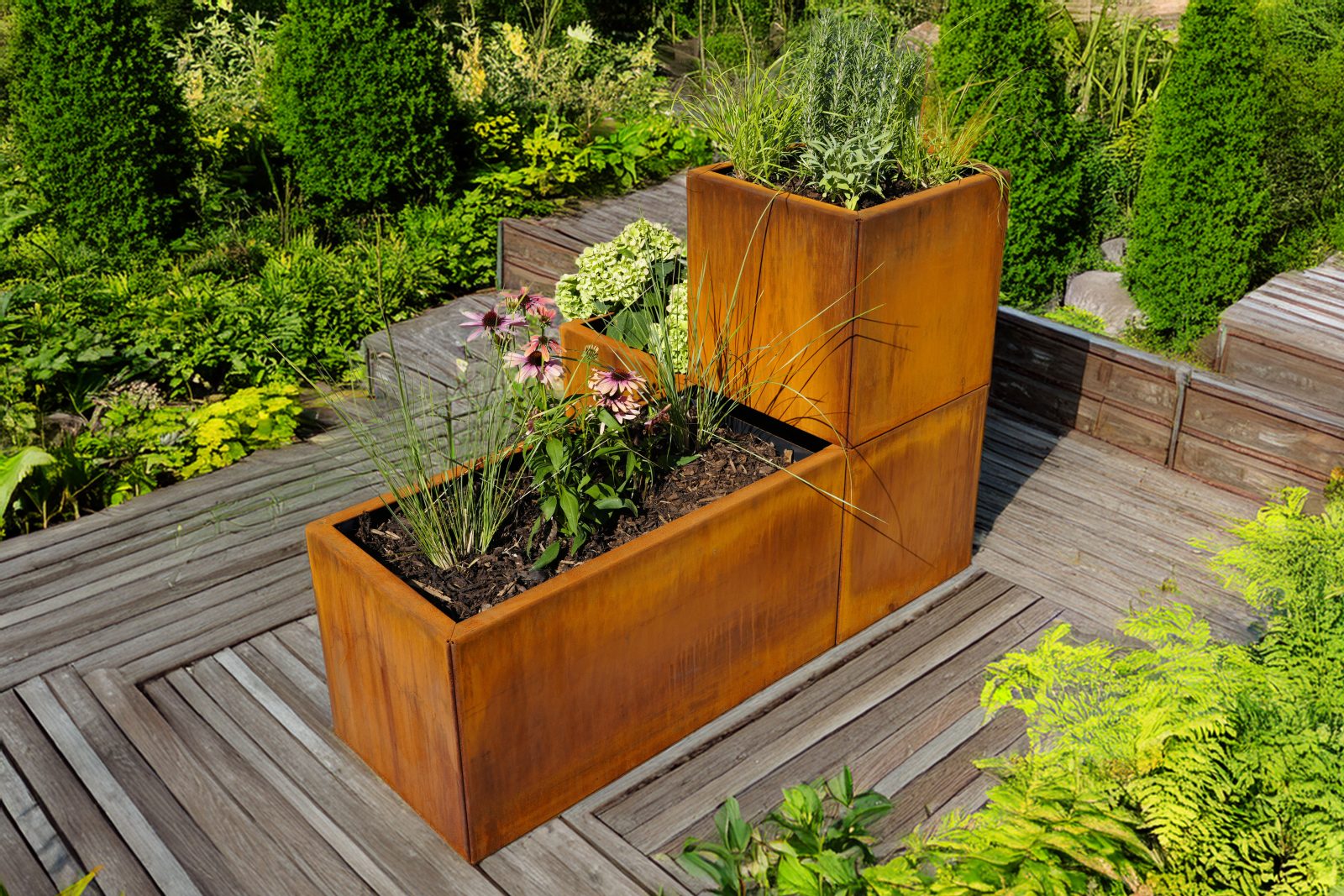 Flare corten Hochbeet, fém magaságyás építés corten acél alapanyagból