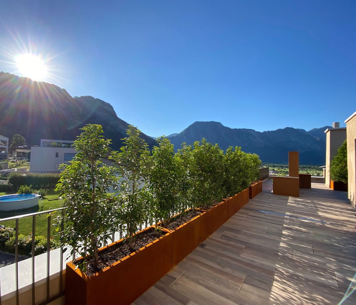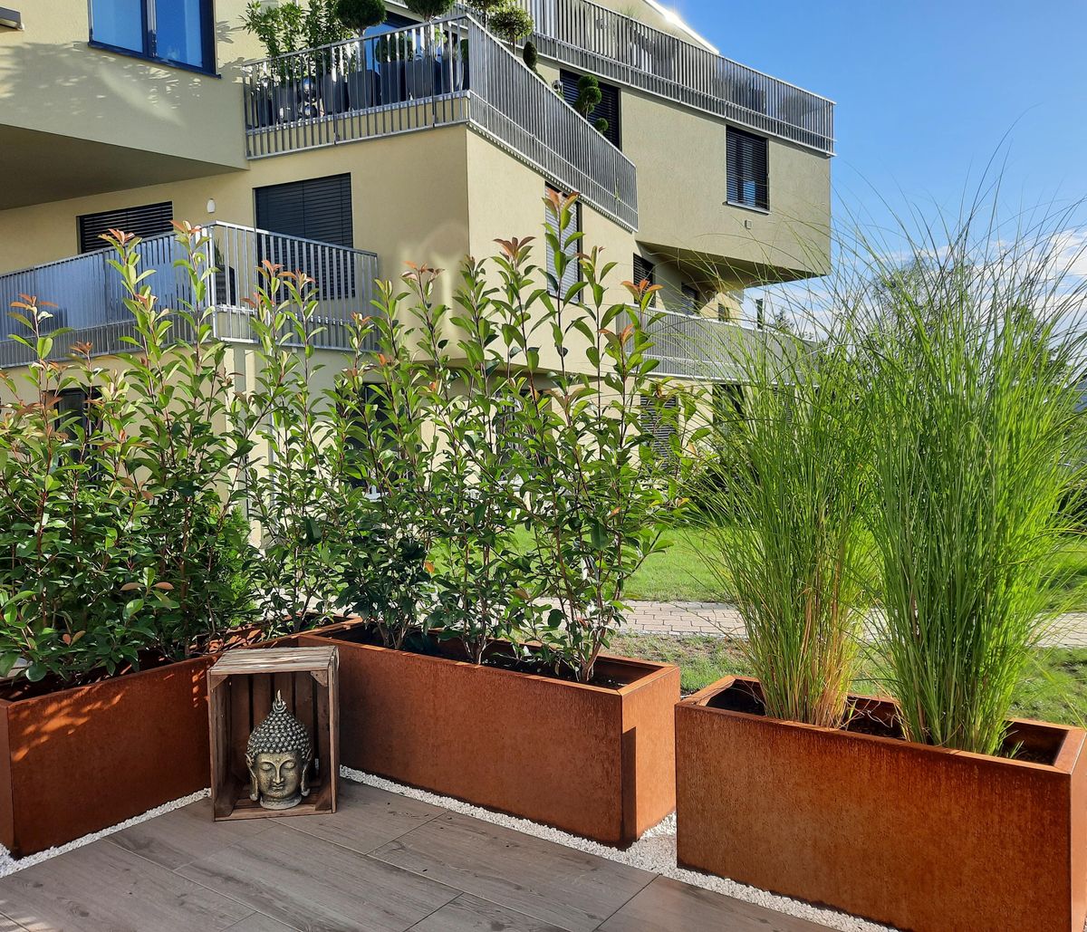A corten acél / Cortenstahl időtlen eleganciája hozzájárul a hosszú távú esztétikai fenntarthatósághoz. Az anyag meleg, földes patinája harmonikusan illeszkedik a természeti környezetbe, és kapcsolatot teremt a modern design és a természet szépsége között.
