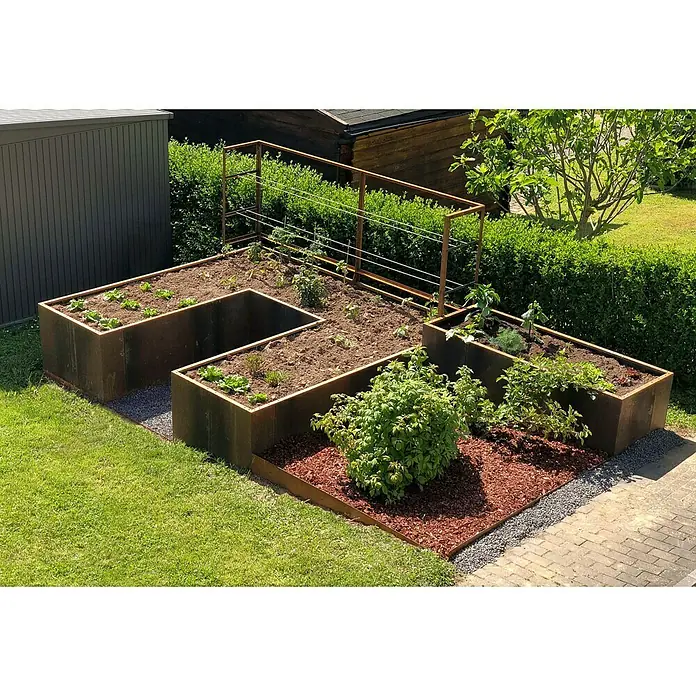 A corten acél emelt ágyak tervezése és telepítése izgalmas lehetőséget kínál a kreativitás és a funkcionalitás ötvözésére a kertben. A patinás acél felület egyedülálló platformot kínál az egyéni tervezési ötletekhez, köszönhetően a forma és a méret rugalmasságának. Akár kis városi kertek, akár kiterjedt parkosított kertek, a fém magaságyások tökéletesen alkalmazkodnak minden környezethez és minden igényhez.