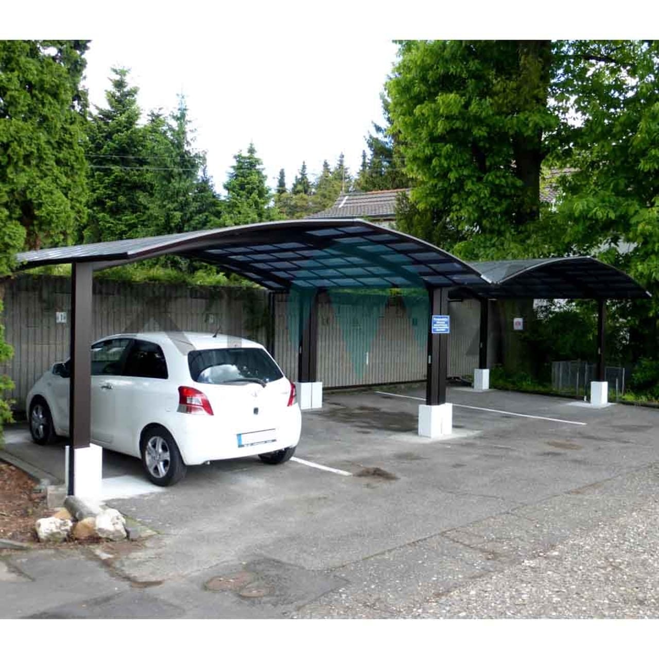 • A garázs tartószerkezete korrózióálló alumínium szerkezet. Elegáns, légies fém vázszerkezet jól illeszkedik a modern vonalakat követő építési környezetbe, minimalista épületekhez is.
