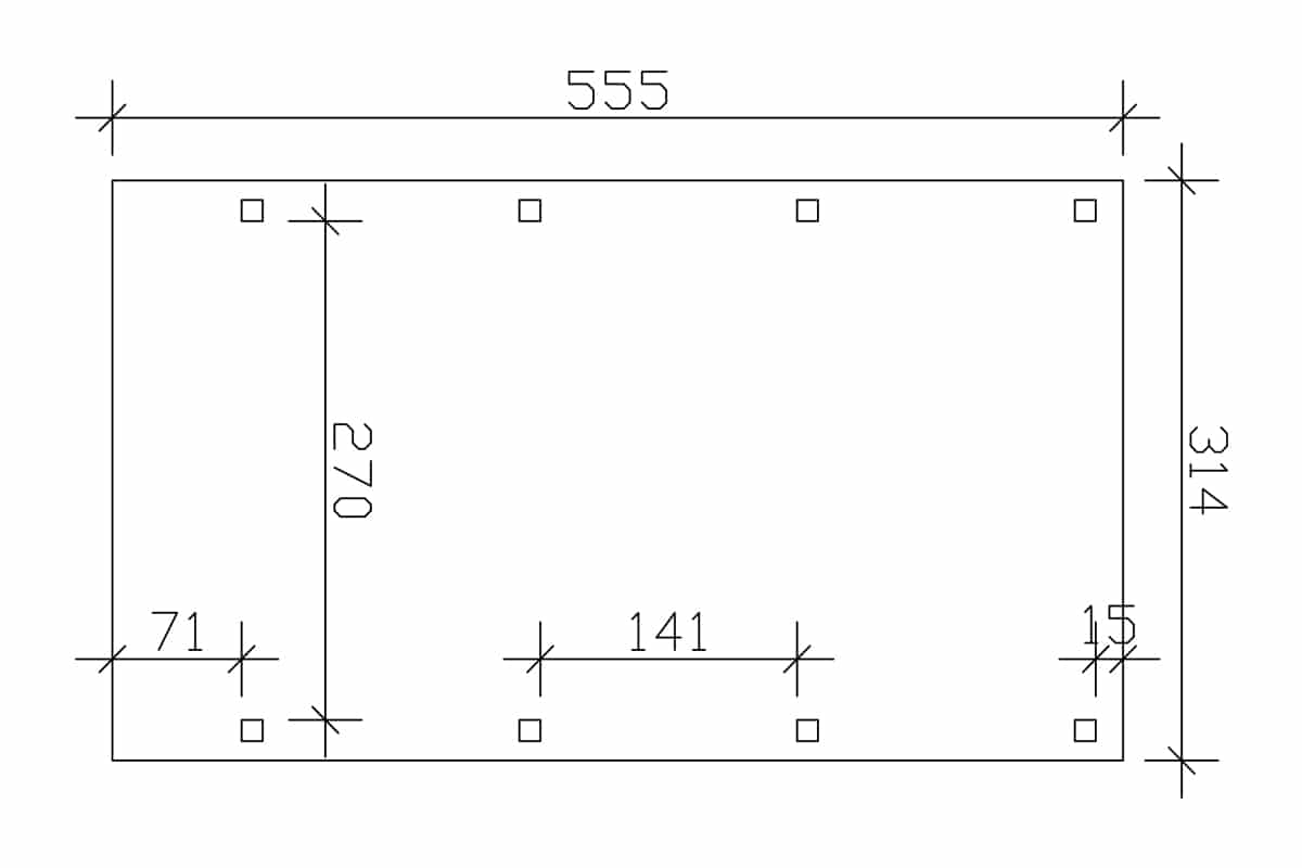 - Teljes autóbeálló garázstető tetőfelülete: szélesség x mélység 314 x 555 cm