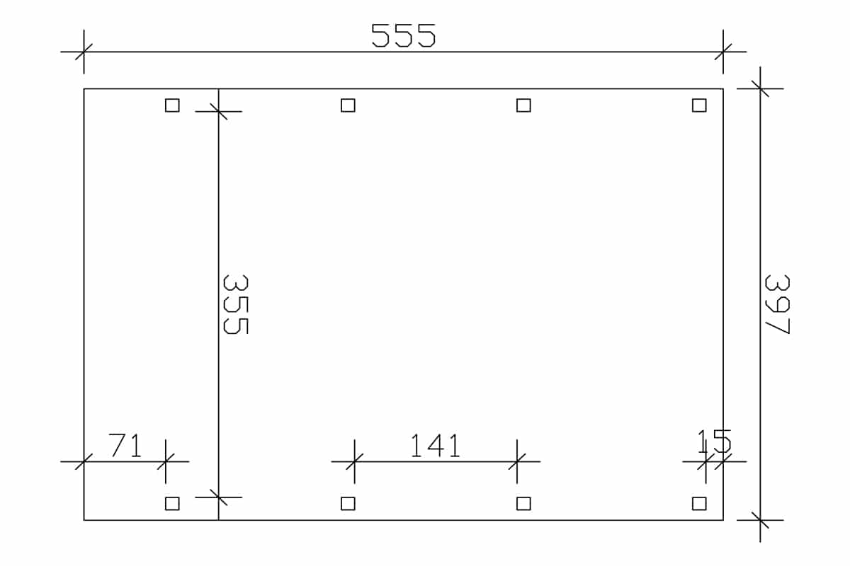 - Teljes garázstető tetőfelület mérete: szélesség x mélység: 397 x 555 cm vagy 397 x 708 cm a kiválasztott garázstető mérettől függően