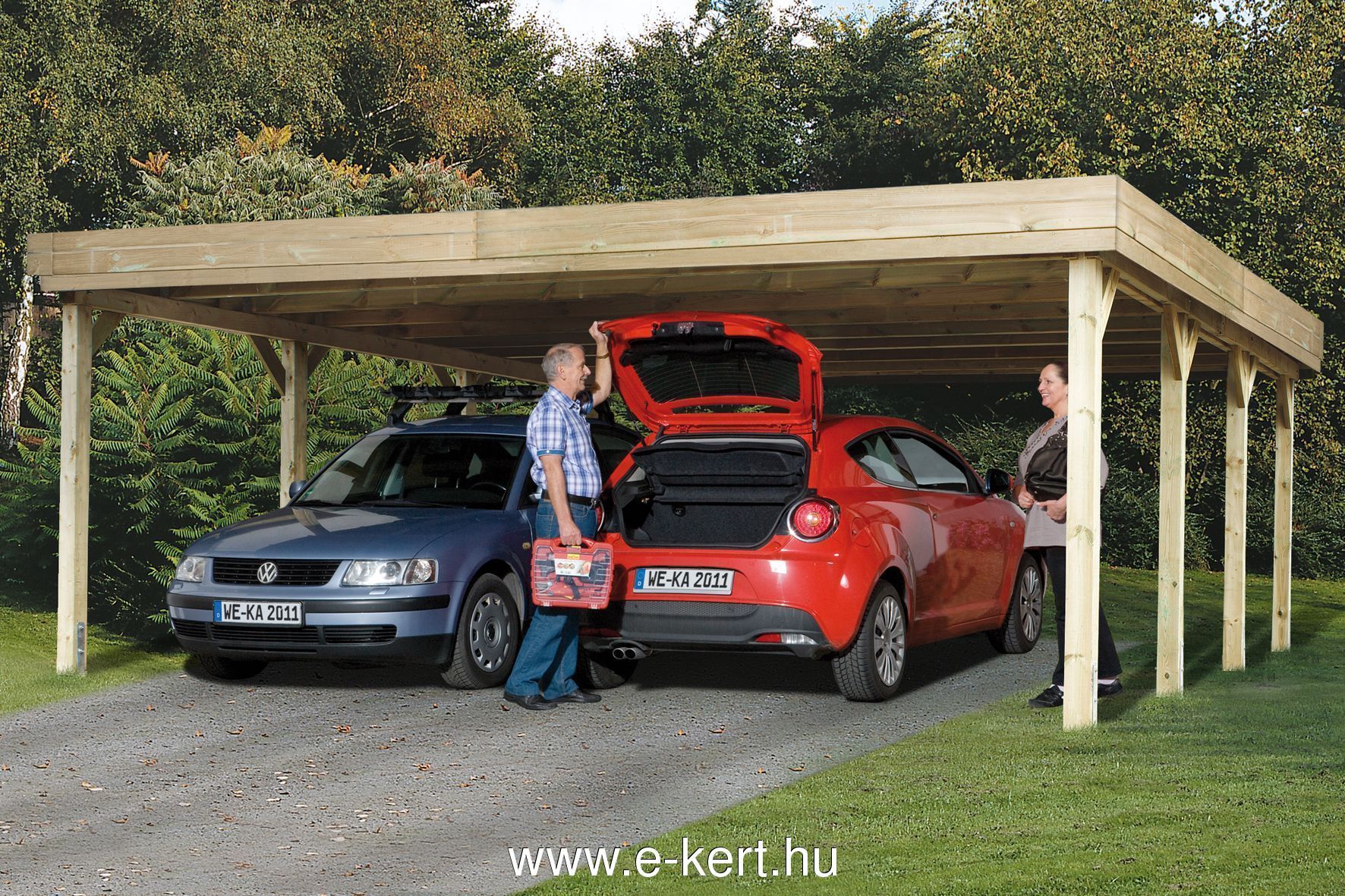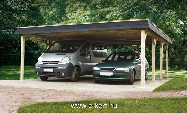 - Masszív méretezett szelvényméretekből épülő, előre gyártott, lapra szerelten házhoz szállítható autóbeálló, garázs.