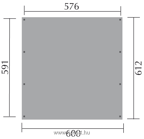 | Méret | 604 x 612 cm acél tetővel, 604 x 812 cm acél tetővel |