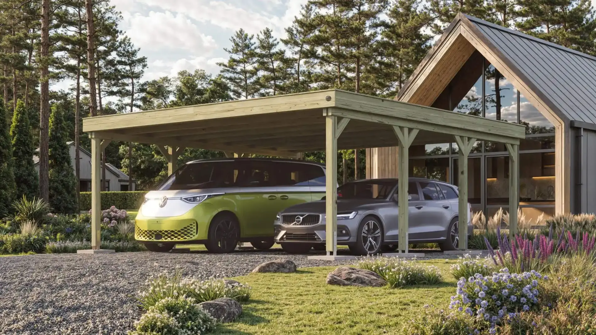 Nyitott garázs építés fából, teljes kivitelezést is rendelhet A-tól Z-ig.