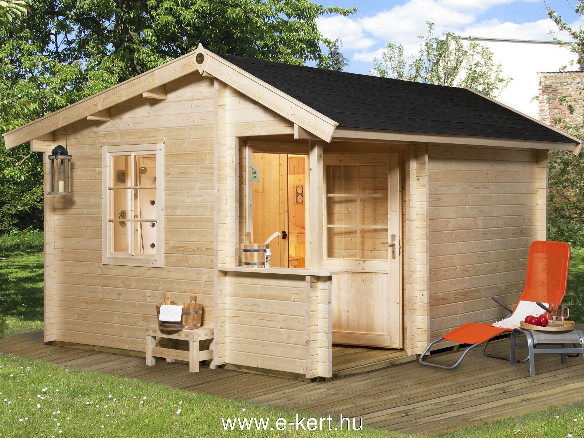 - Szaunaház bejárati ajtó mérete: 80 x 173 cm