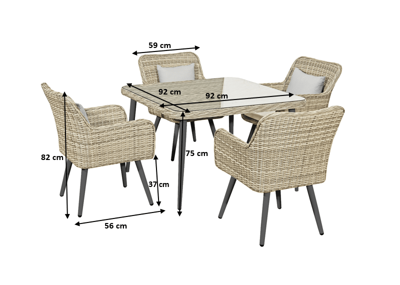 • 1 db rattan asztal 92 x 92 cm  magassága 75 cm + 5mm edzett üveglappal együtt