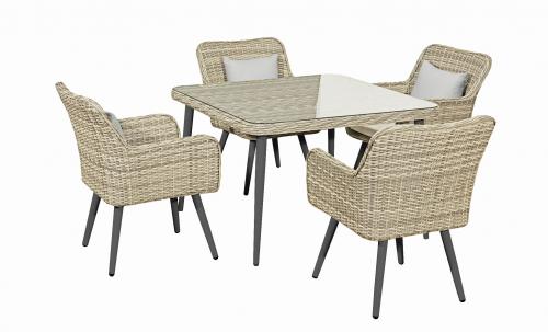• Elegáns, modern megjelenésű étkező kerti bútor, üveglapos asztallal