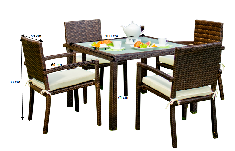 • Rattan asztal mérete: 100 x 100 cm , edzett üveglappal szállítjuk