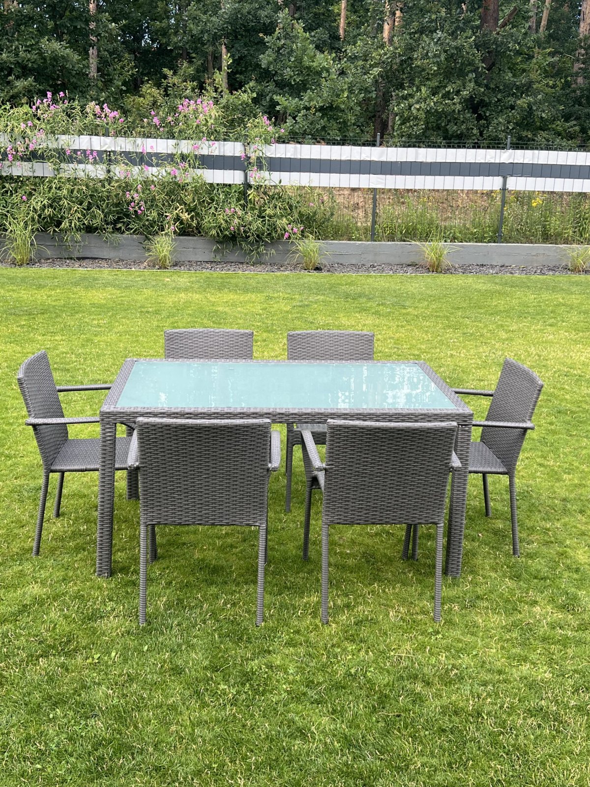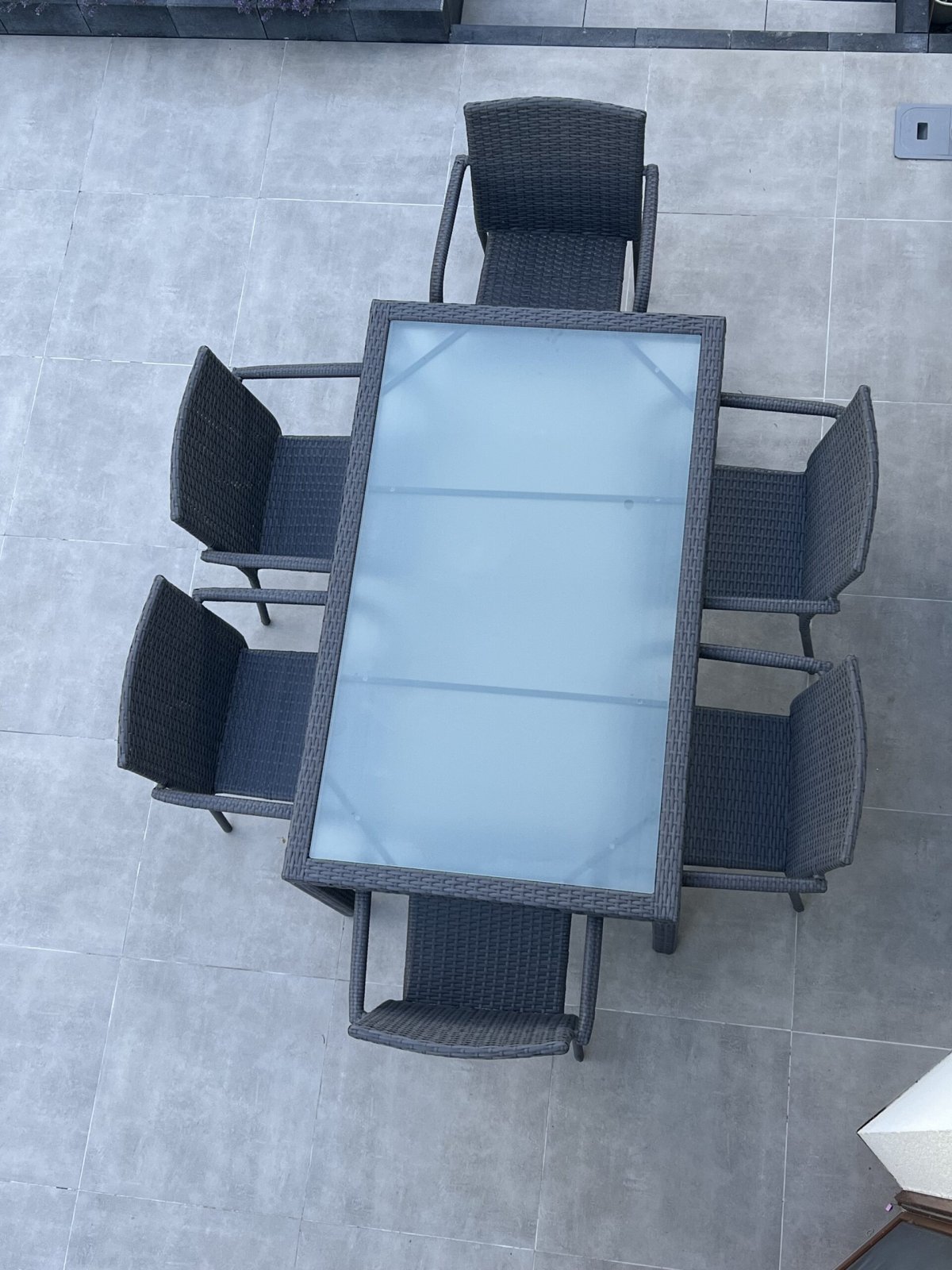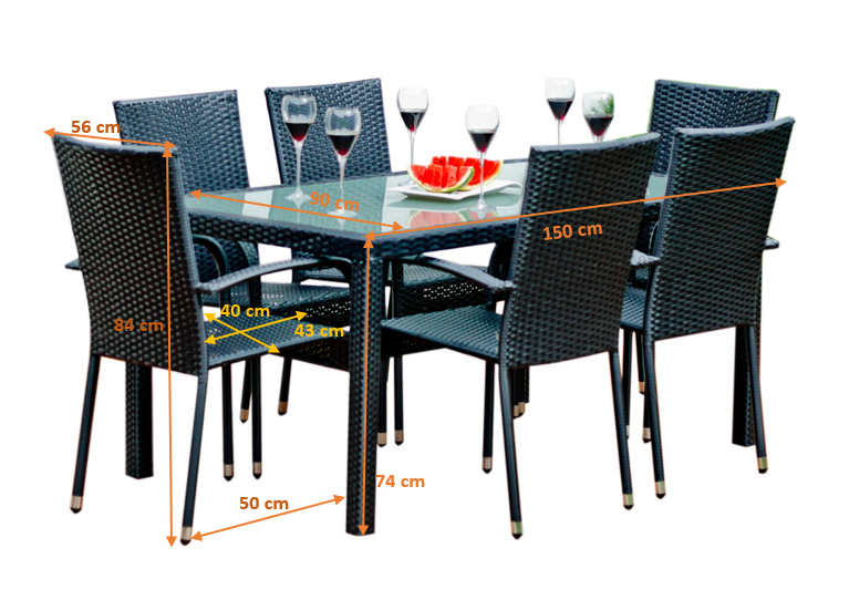 - 6 fő kényelmesen elfér a kerti asztal körül, mivel az asztal magassága 74 cm, ez pont ideális a kényelmes étkezéshez is.