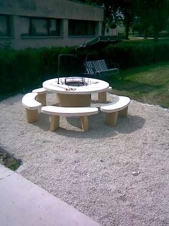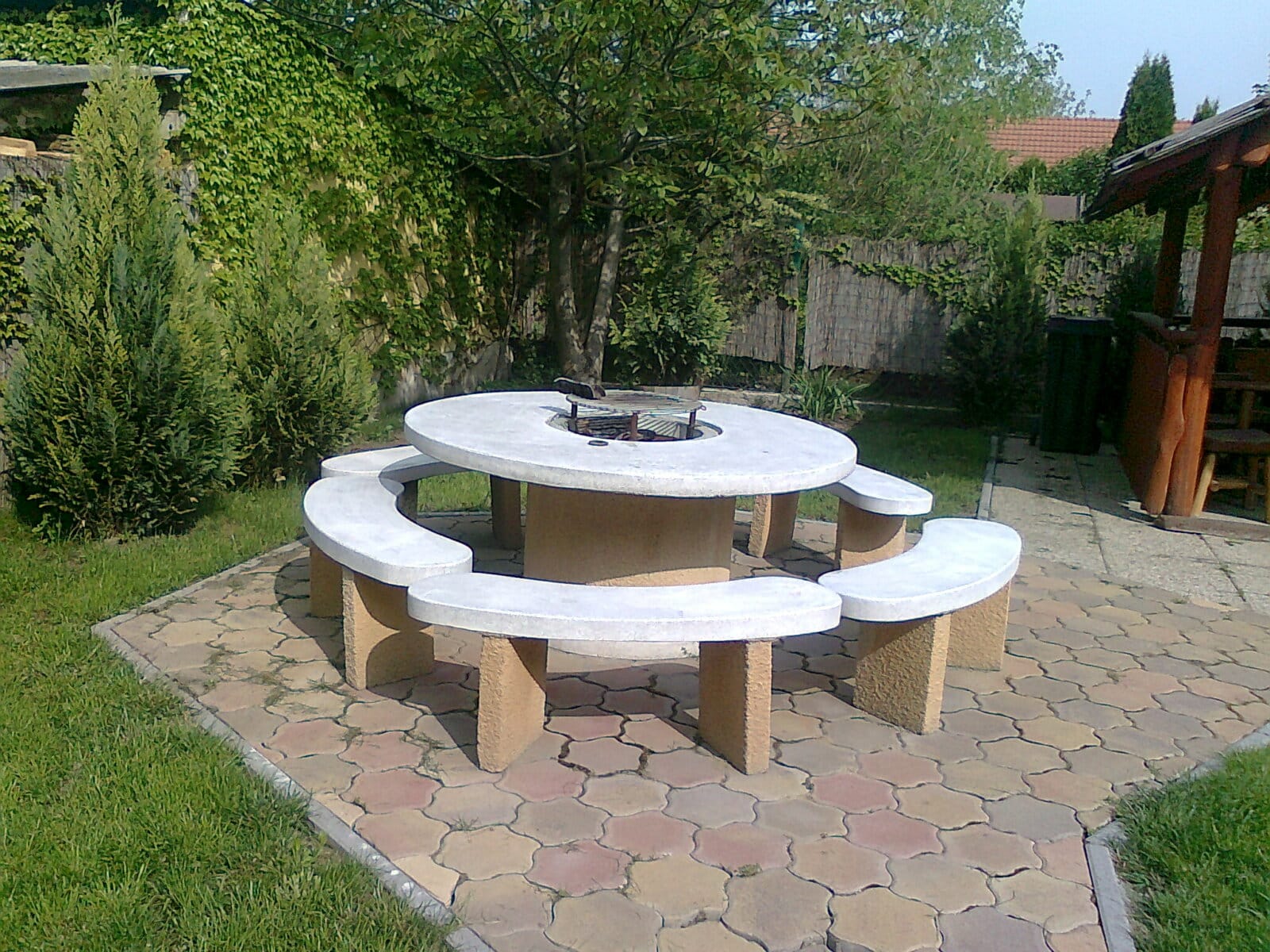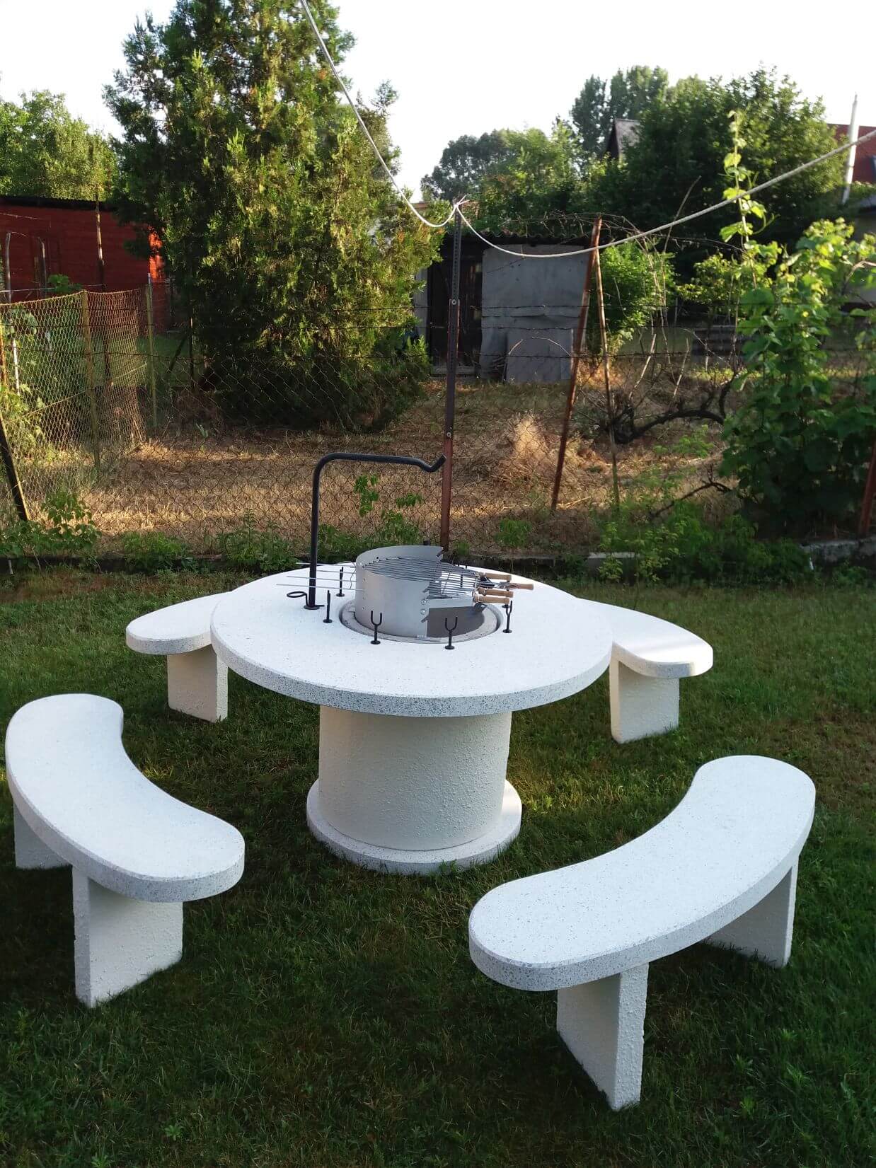 Szalonnasütő bográcsozó gyártása műkőből, többféle színben.
