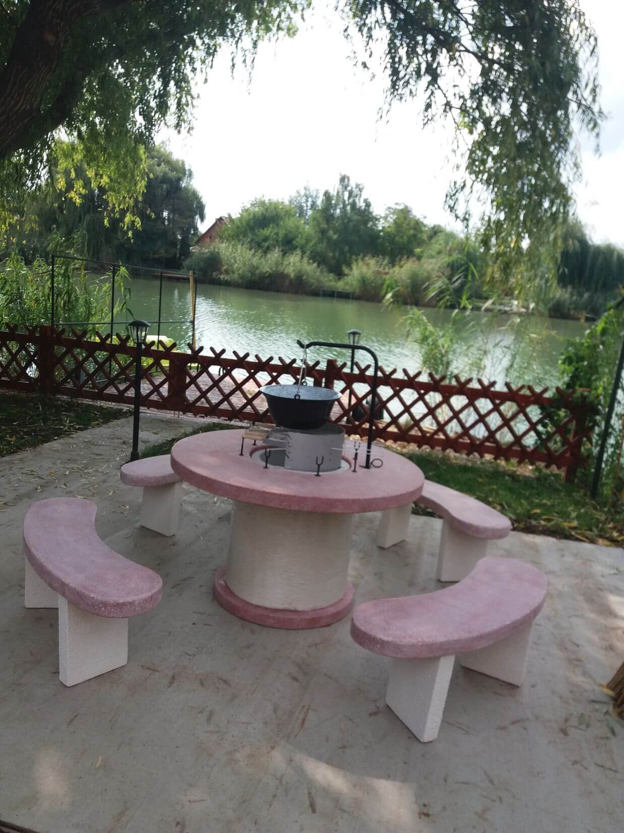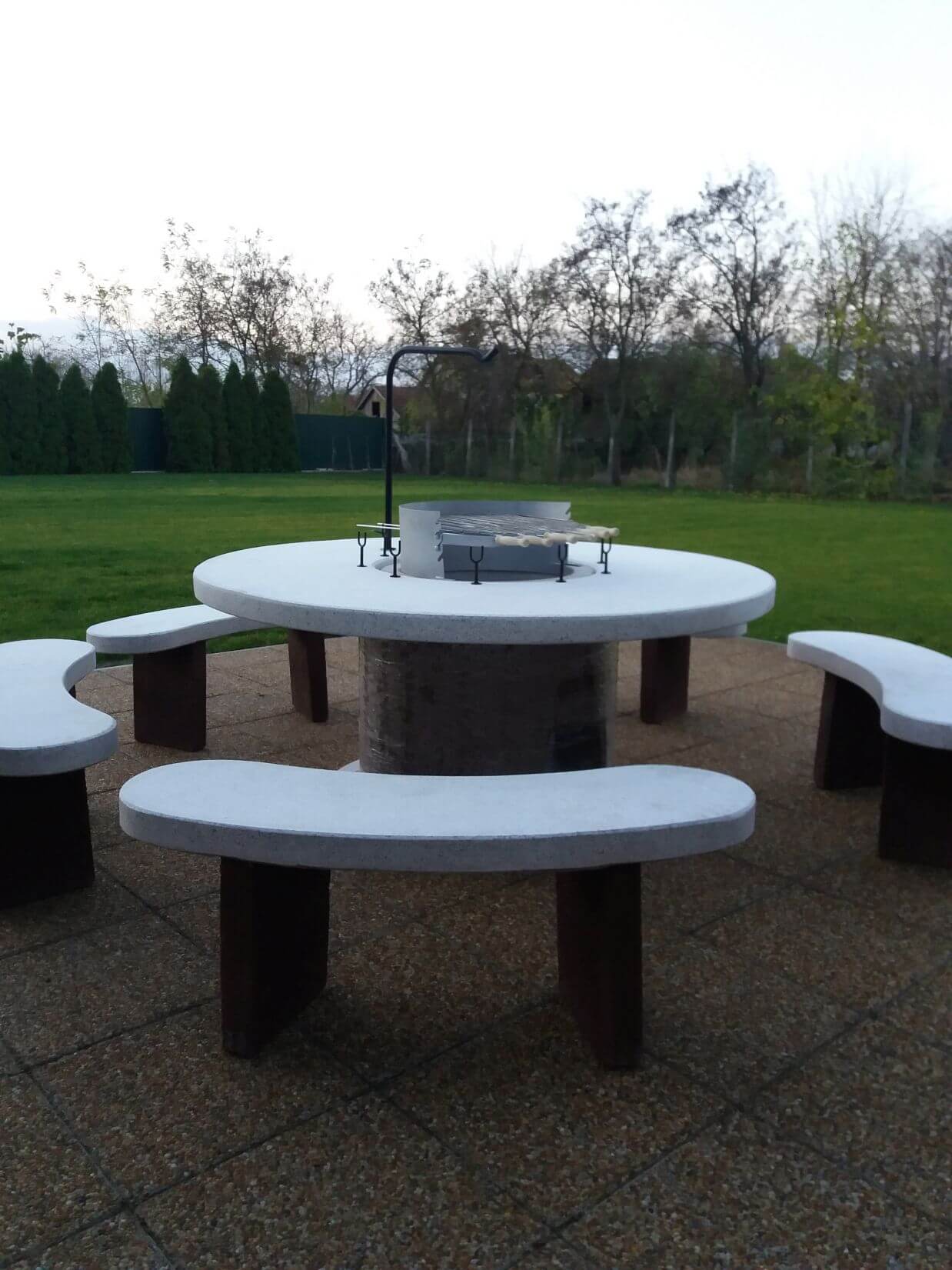 Színezett műkő bográcsozó szalonnasütőnk részletes bemutatása: